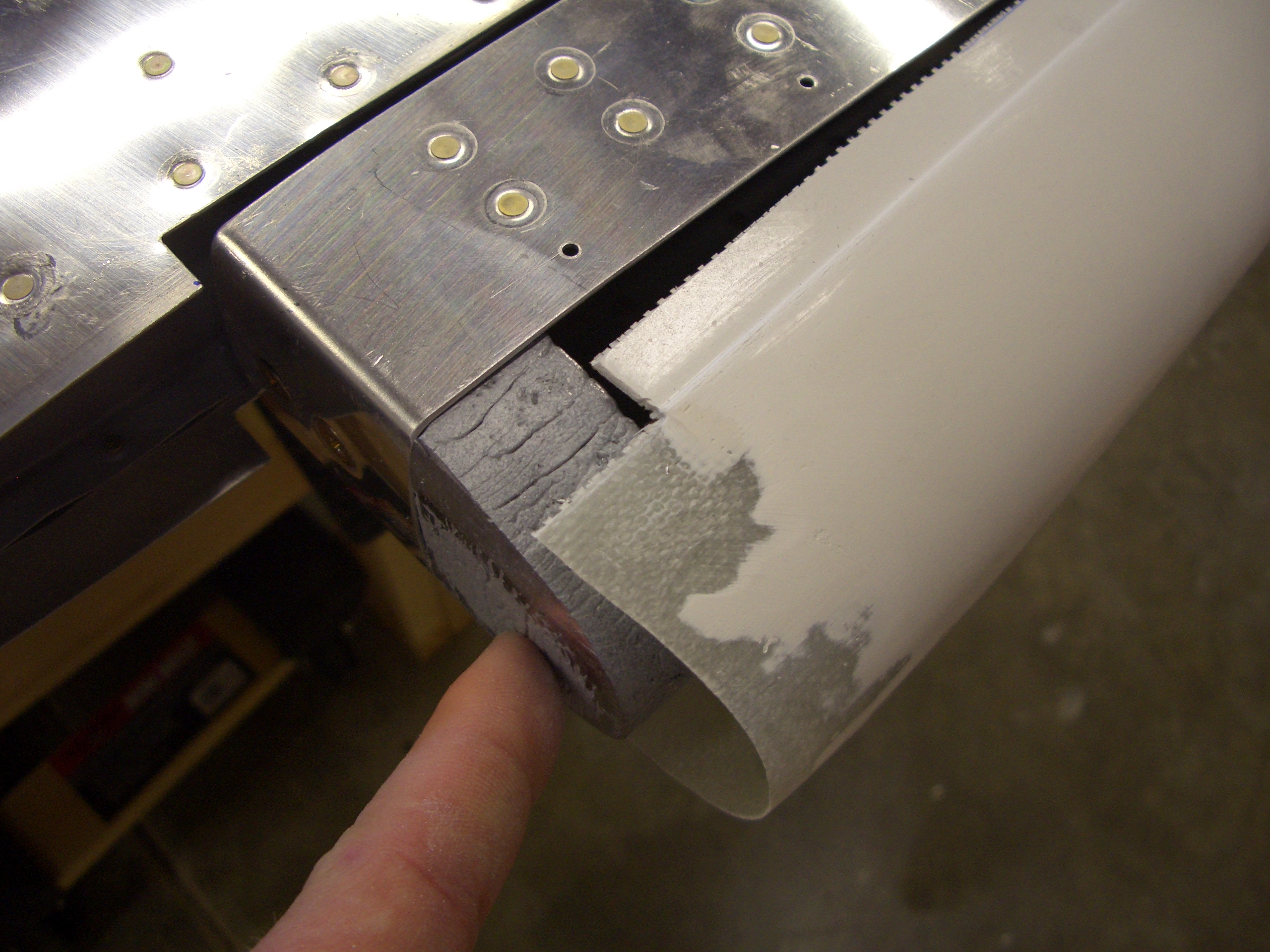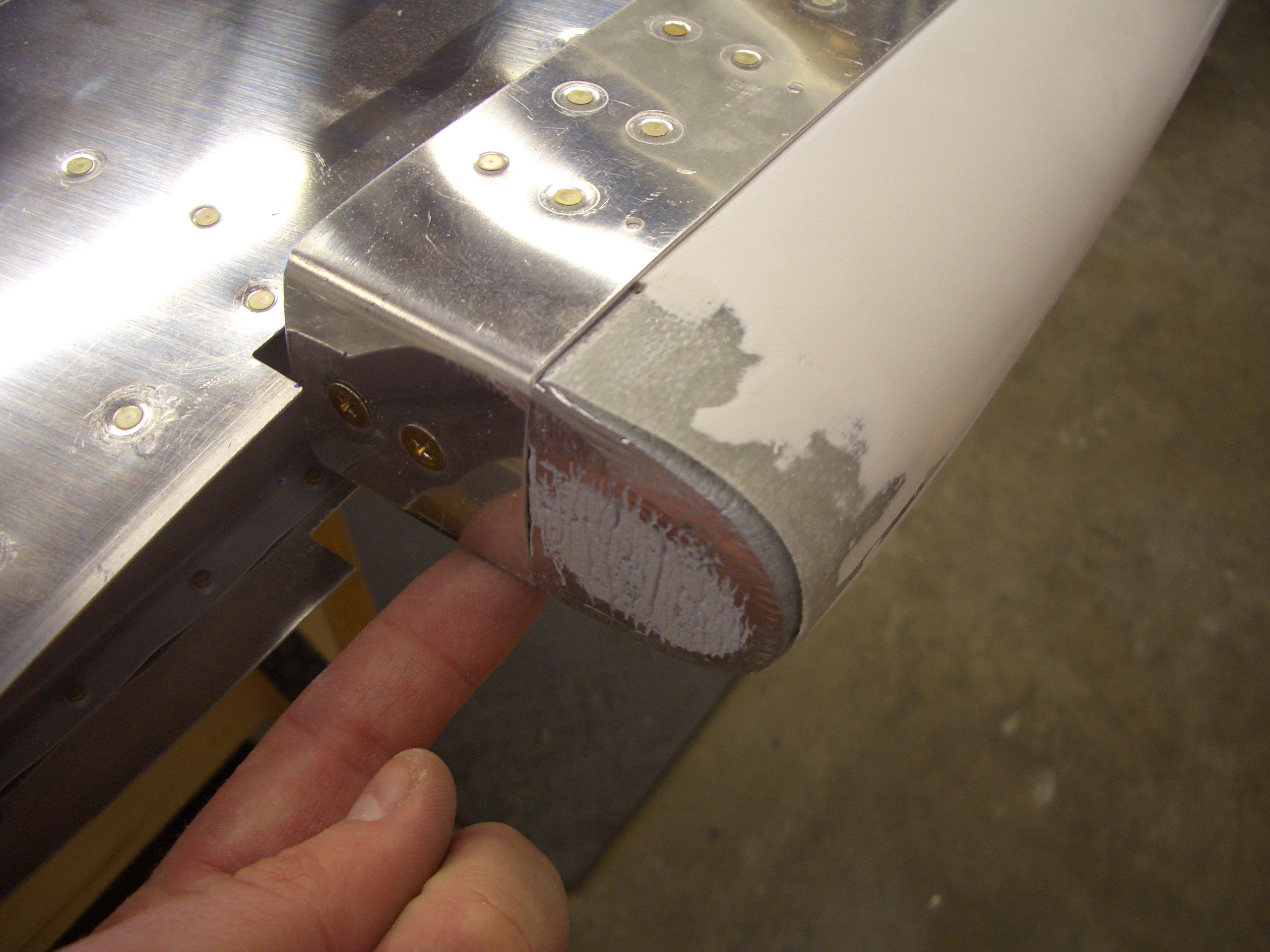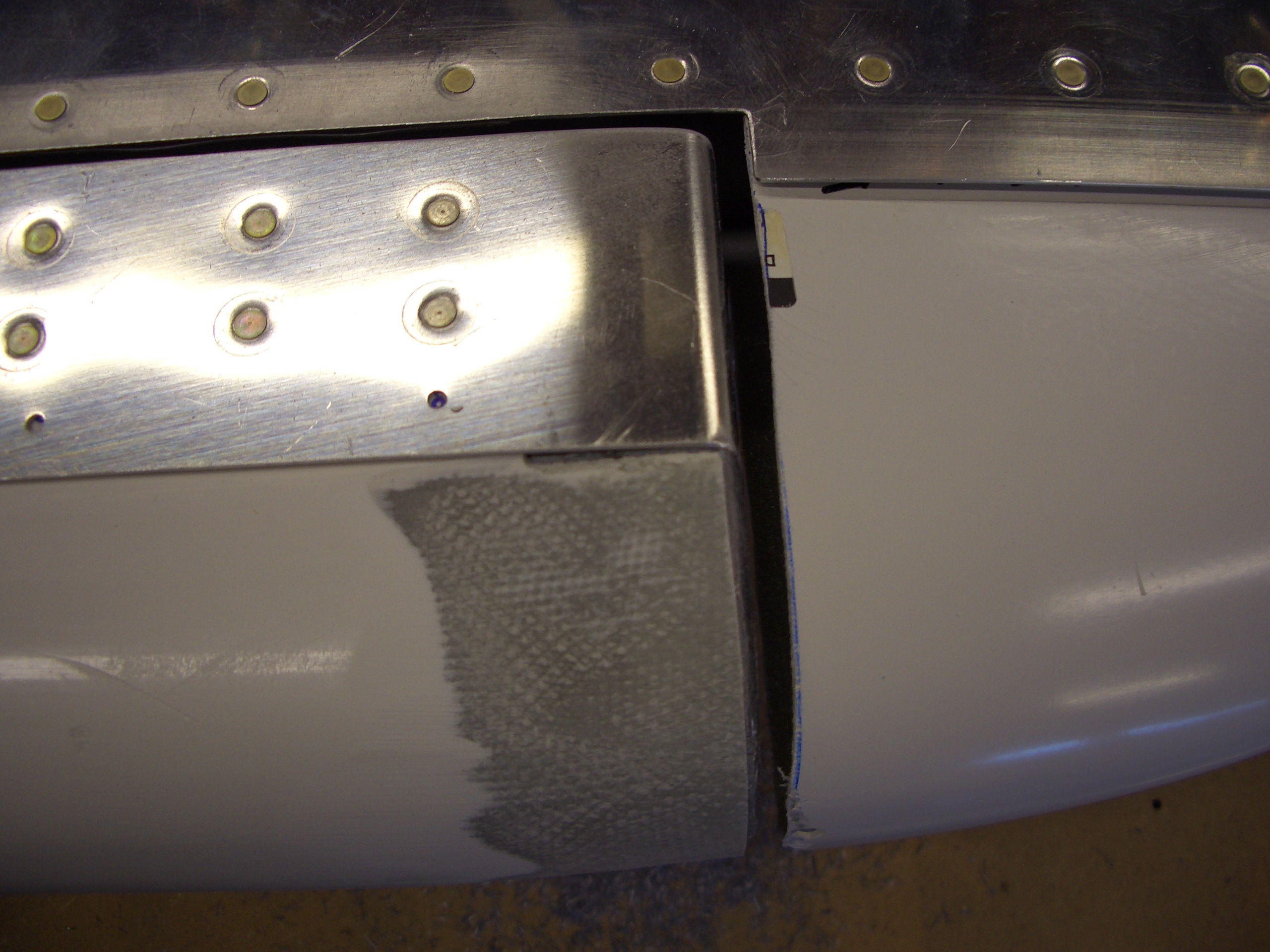 Here’s the horizontal stabilizer tip fairing rough cut and in place.  I opened the gap here up to 3/16 to give me some room to glass and fill in this area.