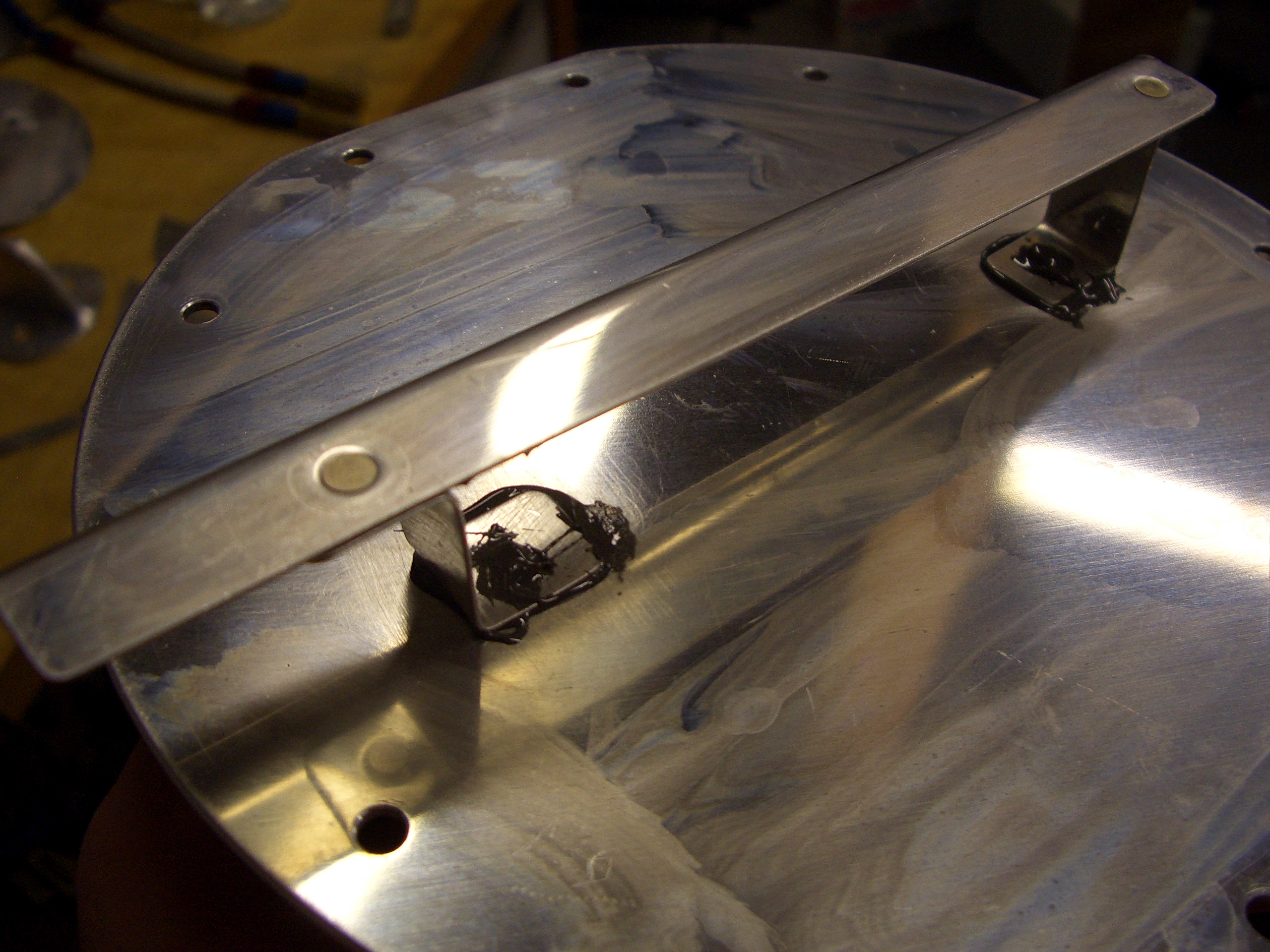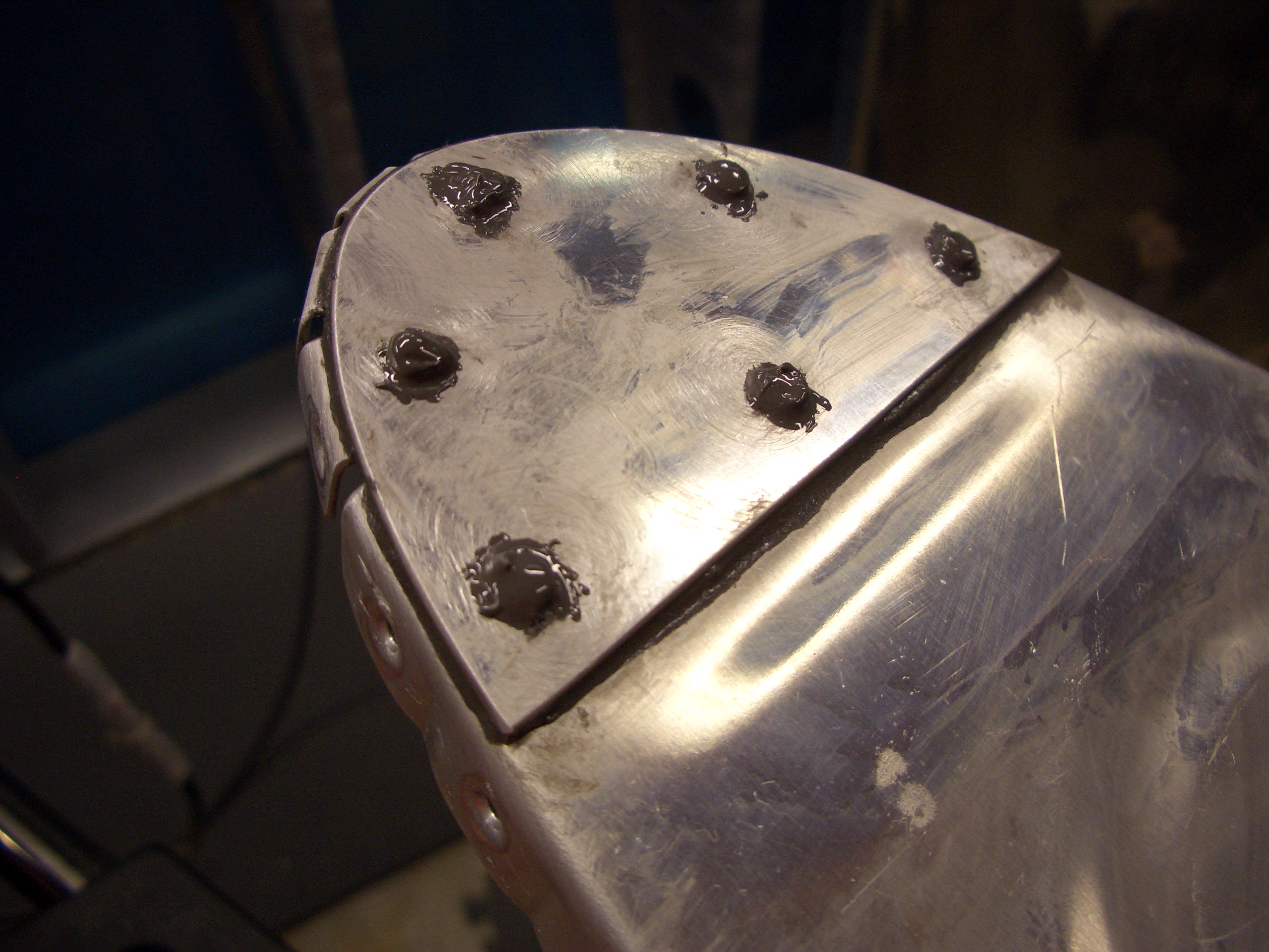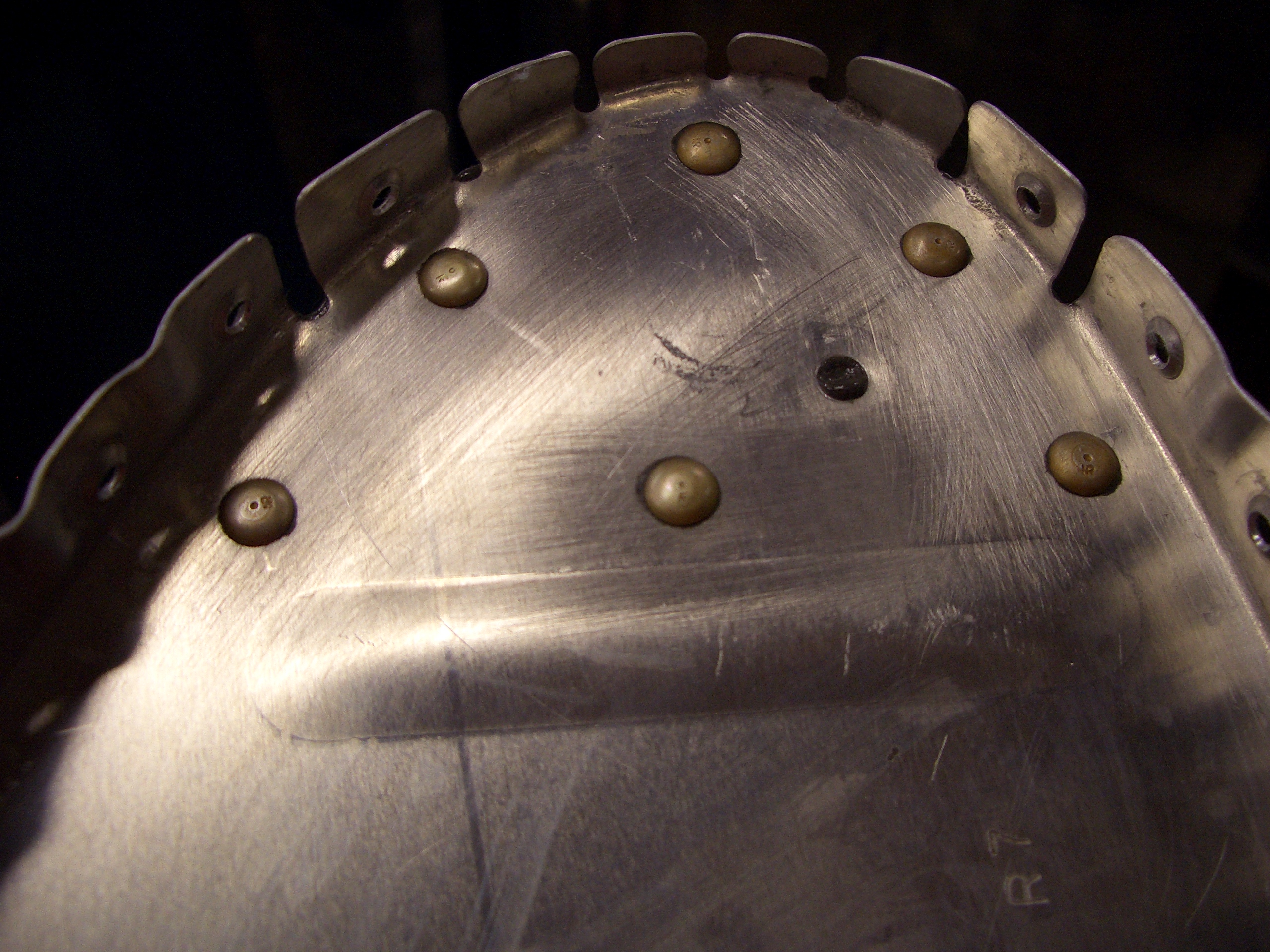 I also riveted reinforcement plates onto the outer ribs and covered over the rivets. Here is the inside of one of the ribs.