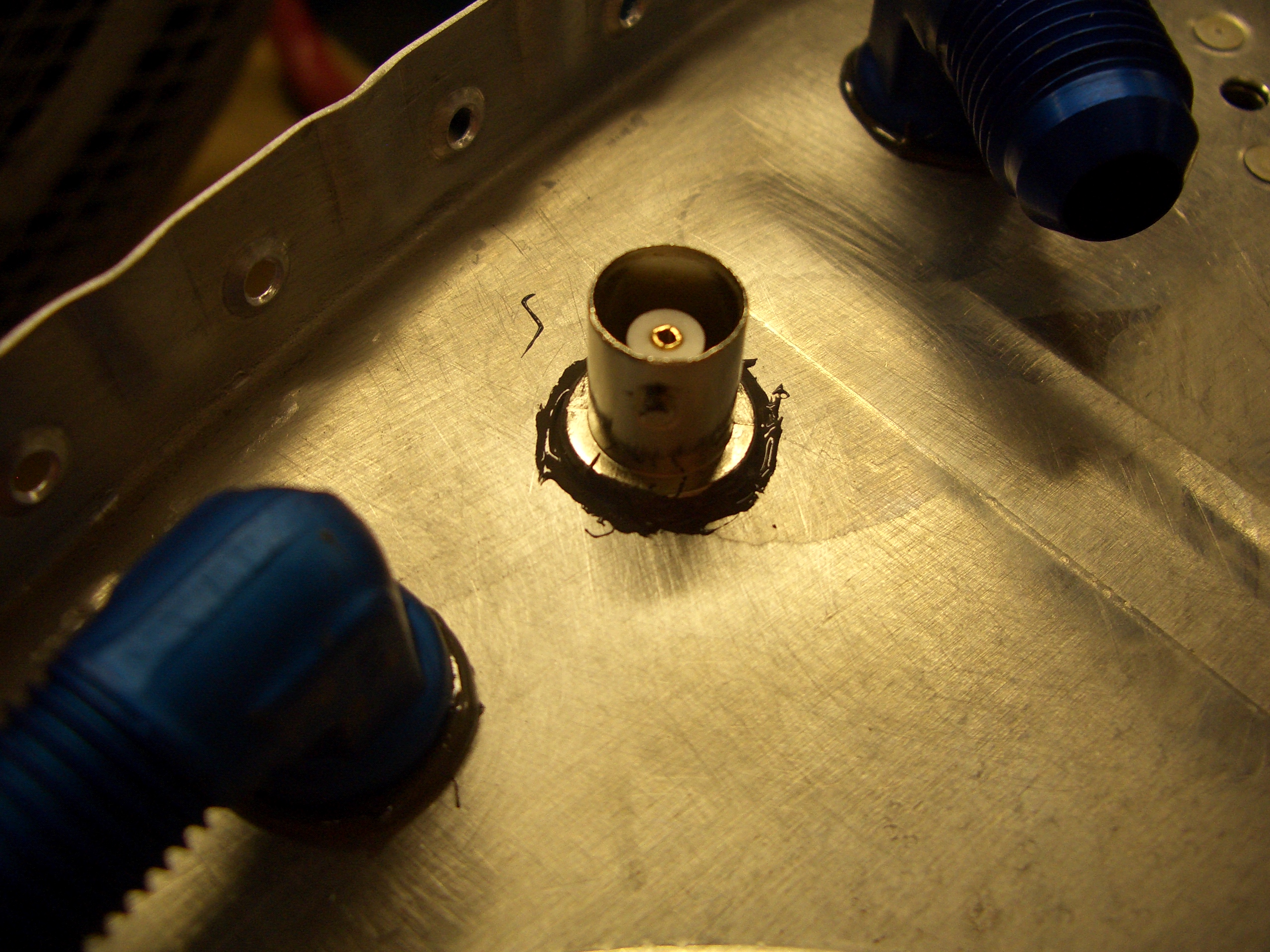 And the inside. Make sure you seal part way down the wire to prevent fuel from wicking through the strands of the wire and through the BNC connector.
