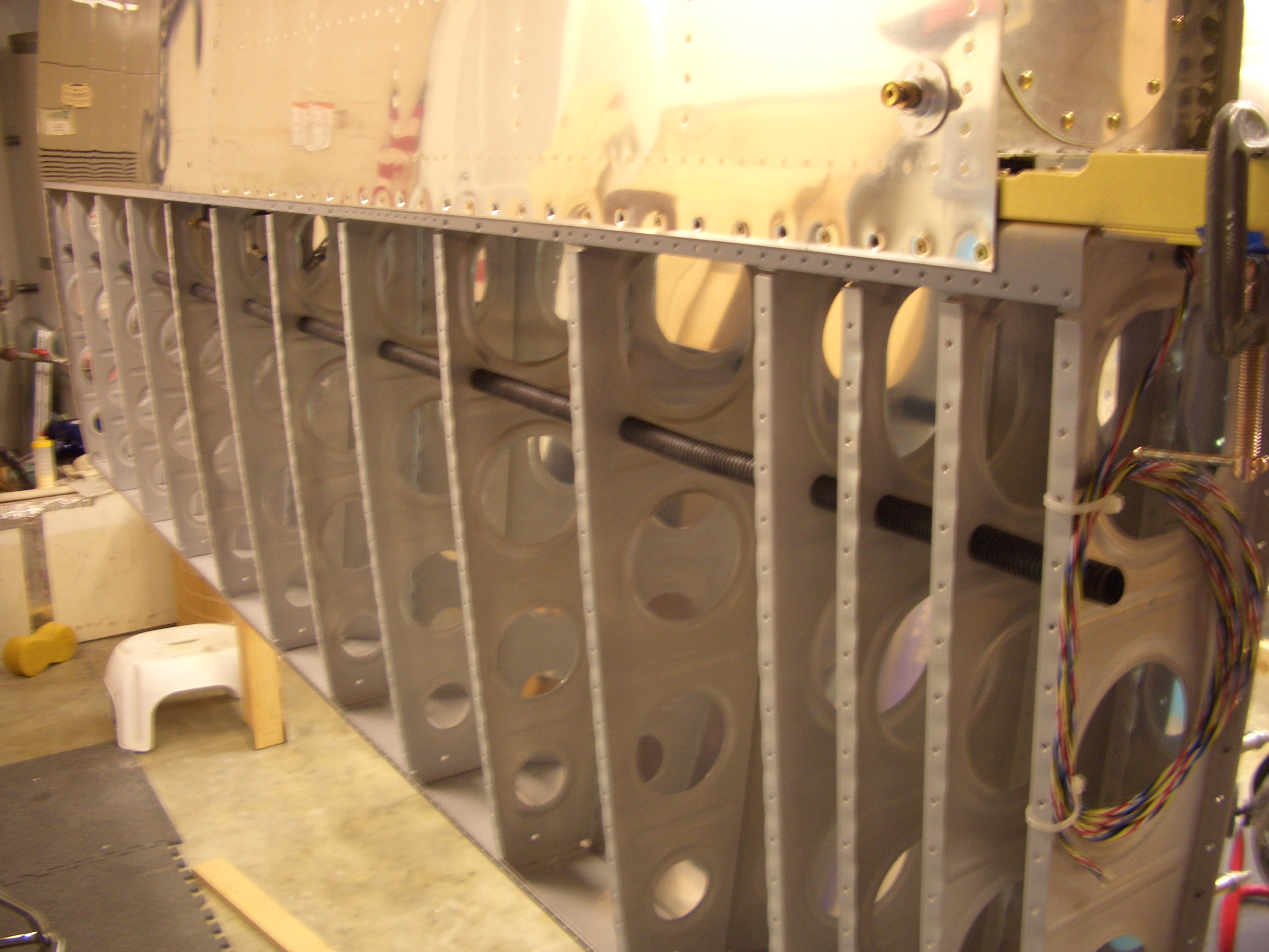After work, I squeezed the remaining rivets along the rear spar and inboard rib. The top of the right wing is totally done now.