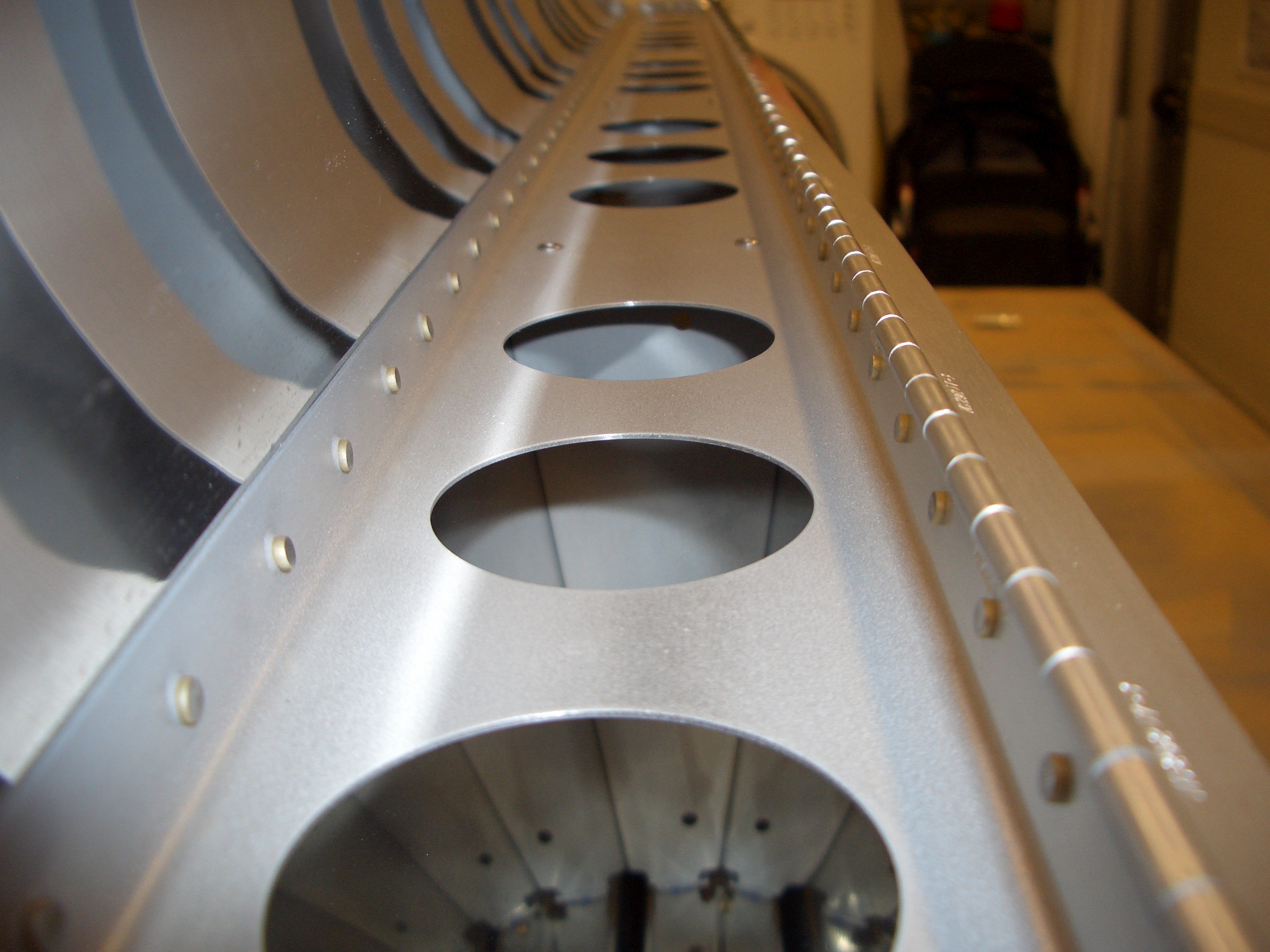 Finally, a few MK319-BS rivets are used near the trailing edge of the flaps (where there is no access to buck these). I had to use one additional MK319-BS rivet on the bottom of each flap (shown here near the top of this picture) when the flap pushrod nutplate interferes with bucking this rivet.