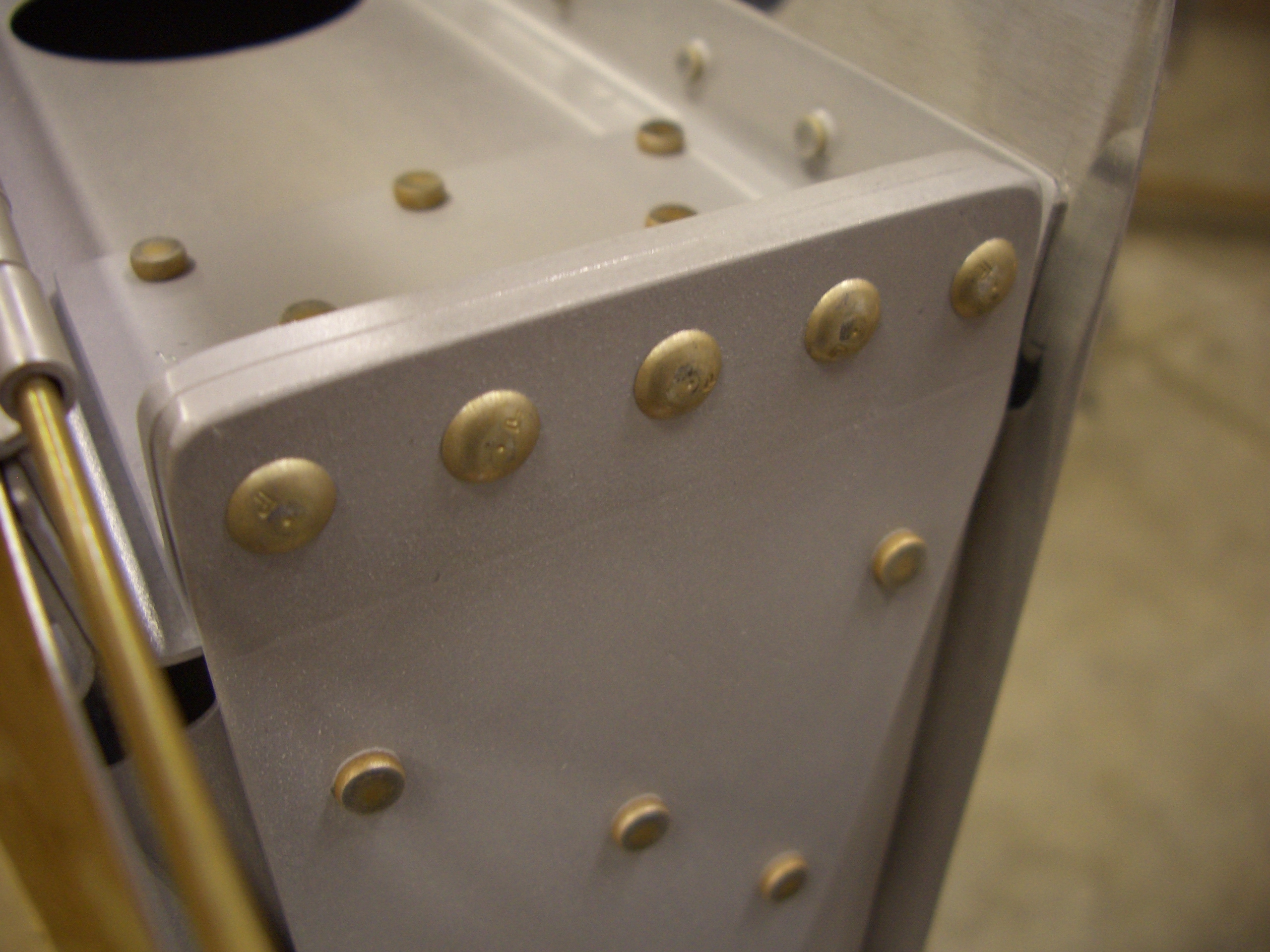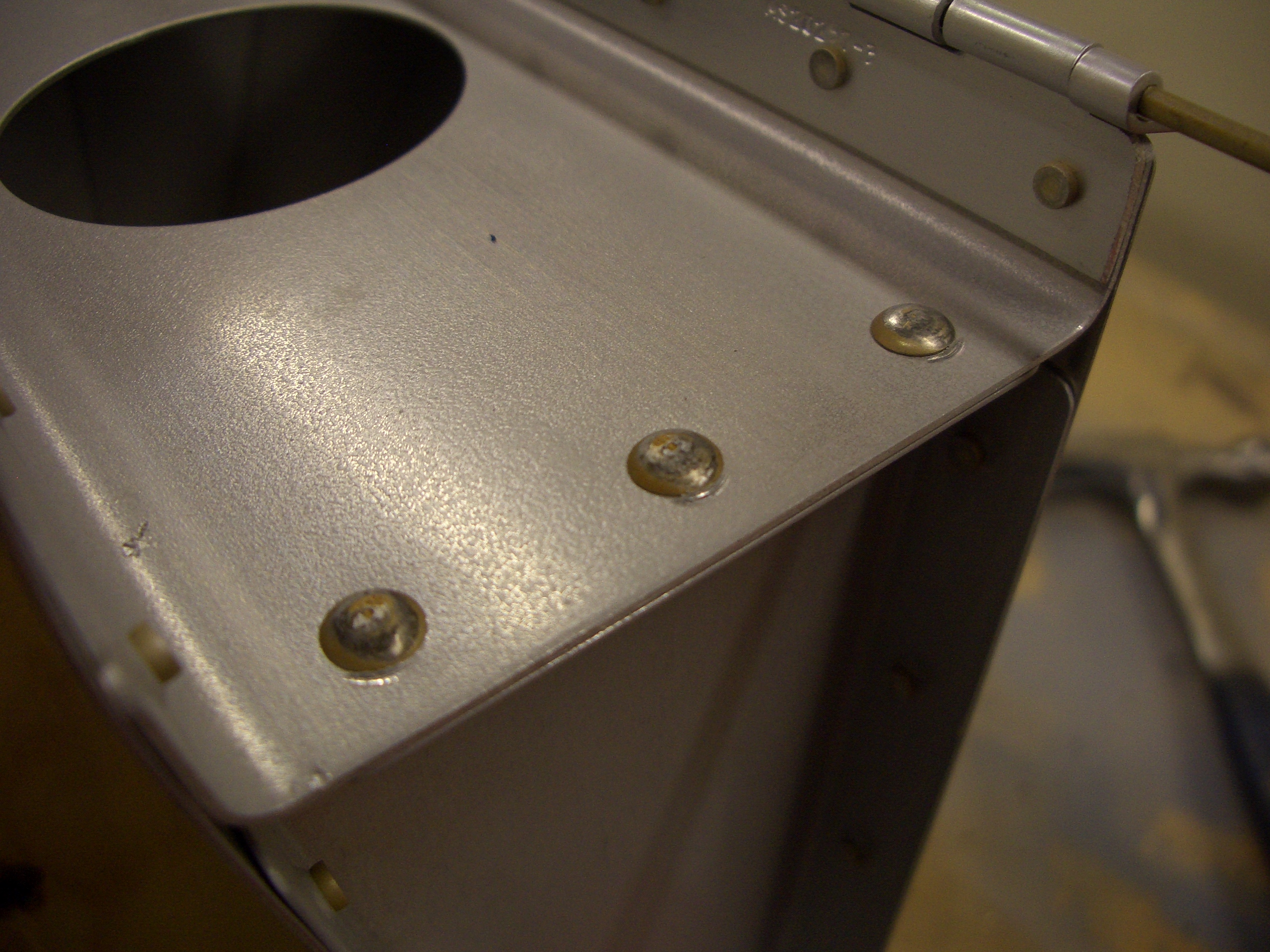 The plans call for LP4-3 rivets here, but I’m running short, so I set AN470AD4-4 rivets here instead. I shot and bucked these solo using a double offset rivet set since you can’t get a squeezer in here.