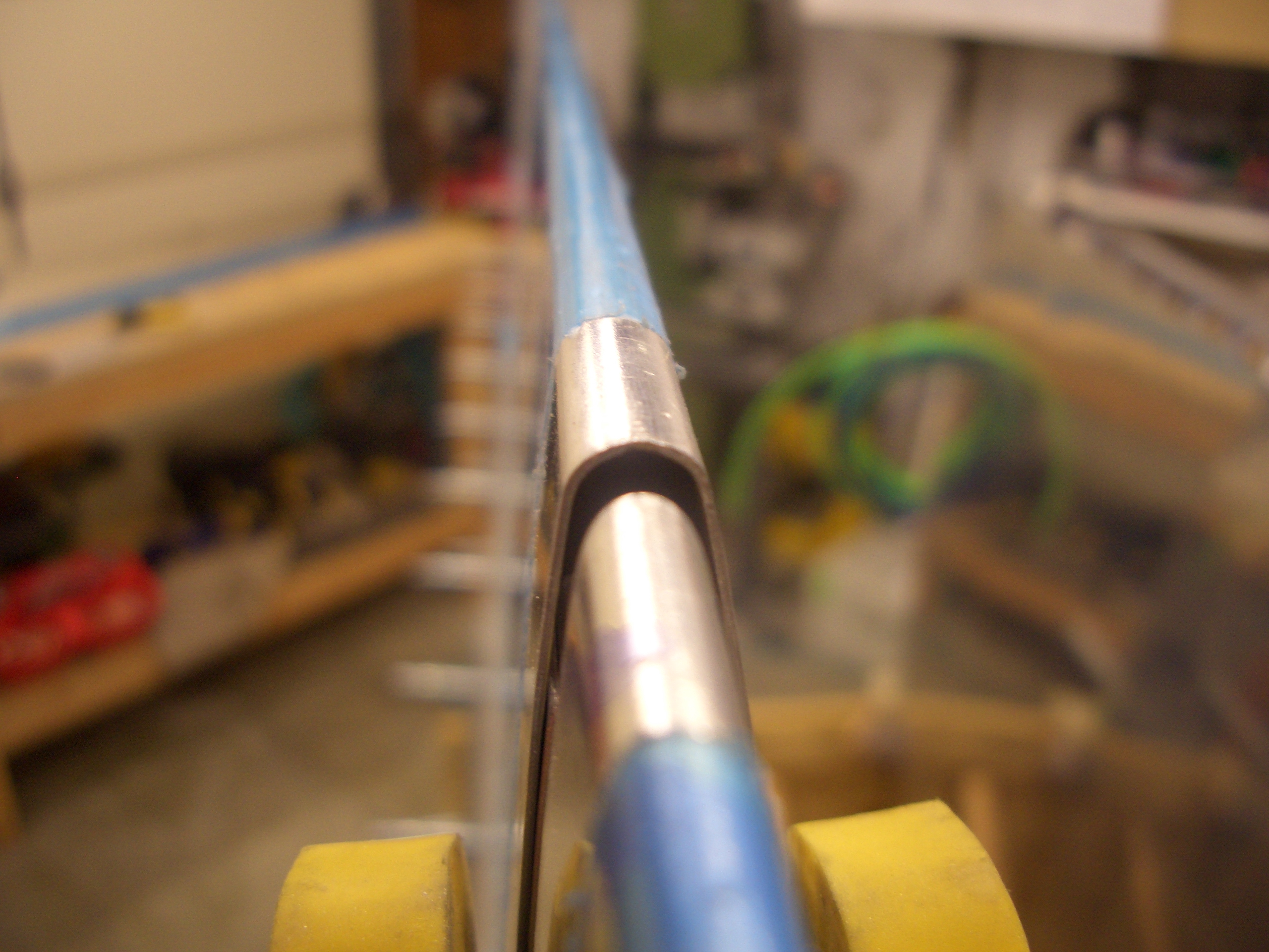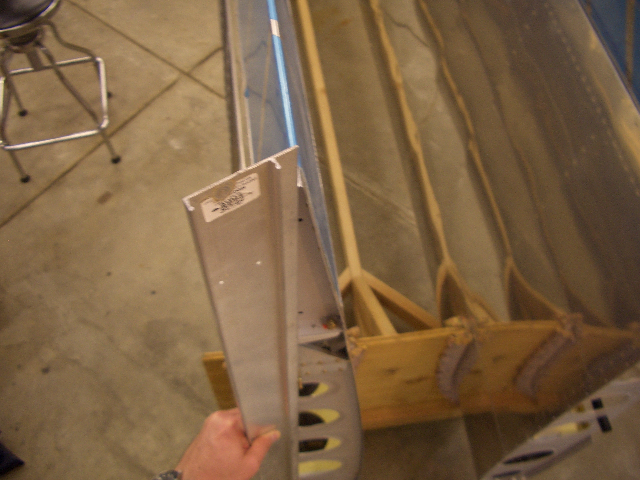 As I was aligning the trailing edges, I noticed something funny. The trailing edge radiuses of the flaps and ailerons are not the same. Here is one shot looking along the edge. The aileron is the lower trailing edge with the smaller radius and the flap is the upper trailing edge with the larger radius.