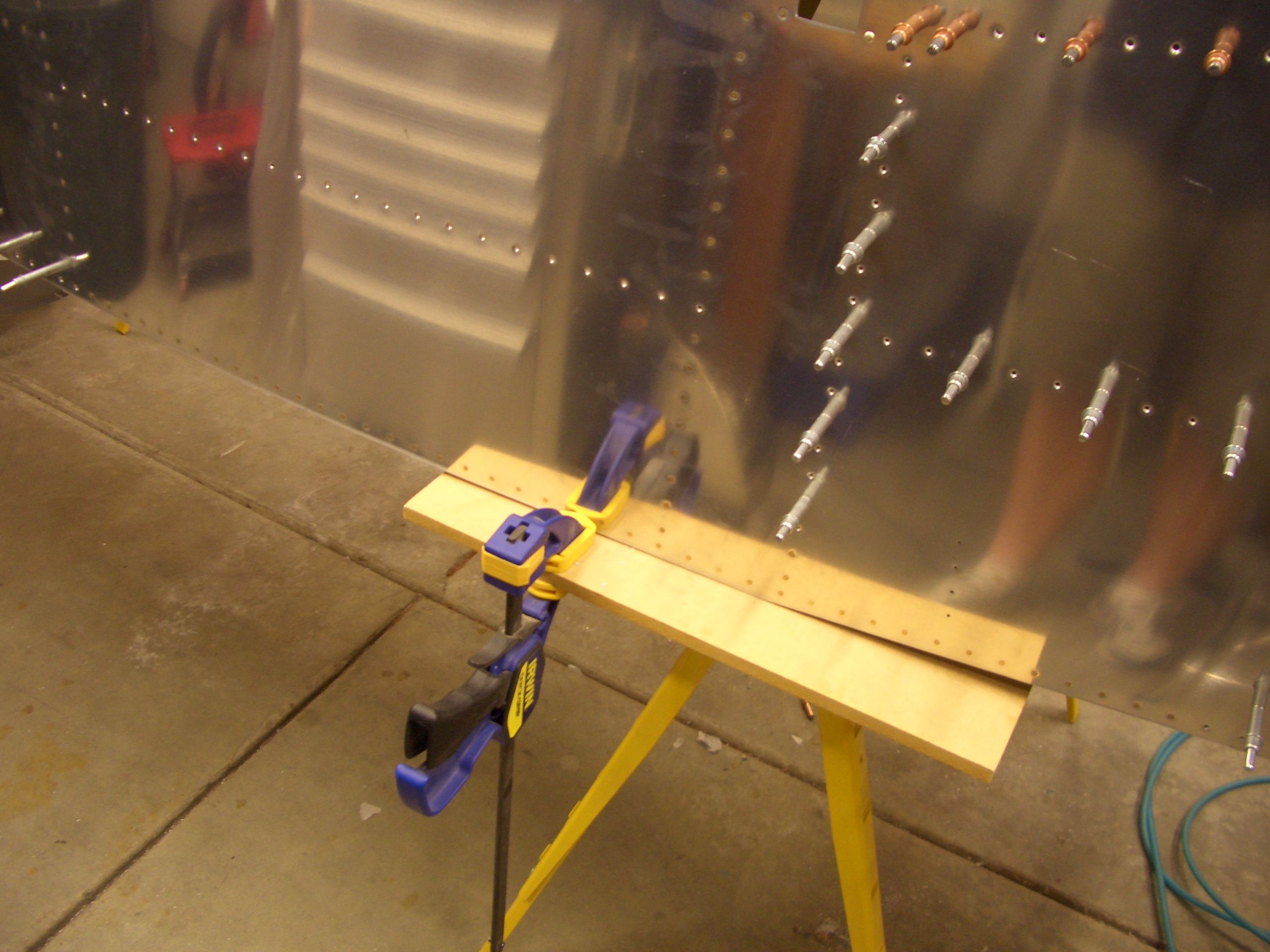 Aft of F-705, there are a few places on each side where there are three rivets close together. The middle rivets can be set now since they just keep the longerons in place. The remaining holes are left open for the time being since they also attach the top skins.
