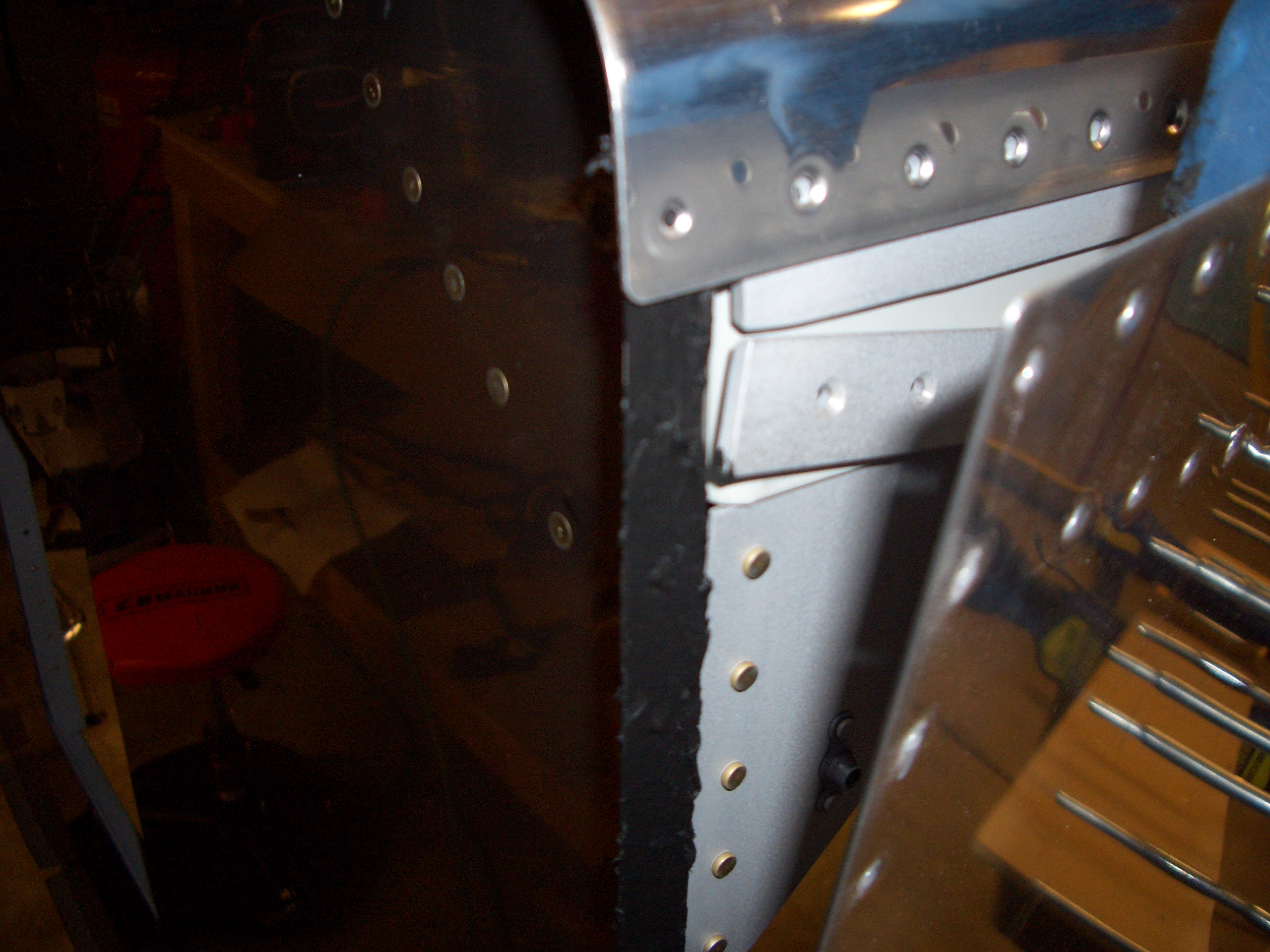 Here you can see where I’ve applied the sealant to the firewall flange. Basically, you just butter on a thin, even coat and then cleco the parts together.