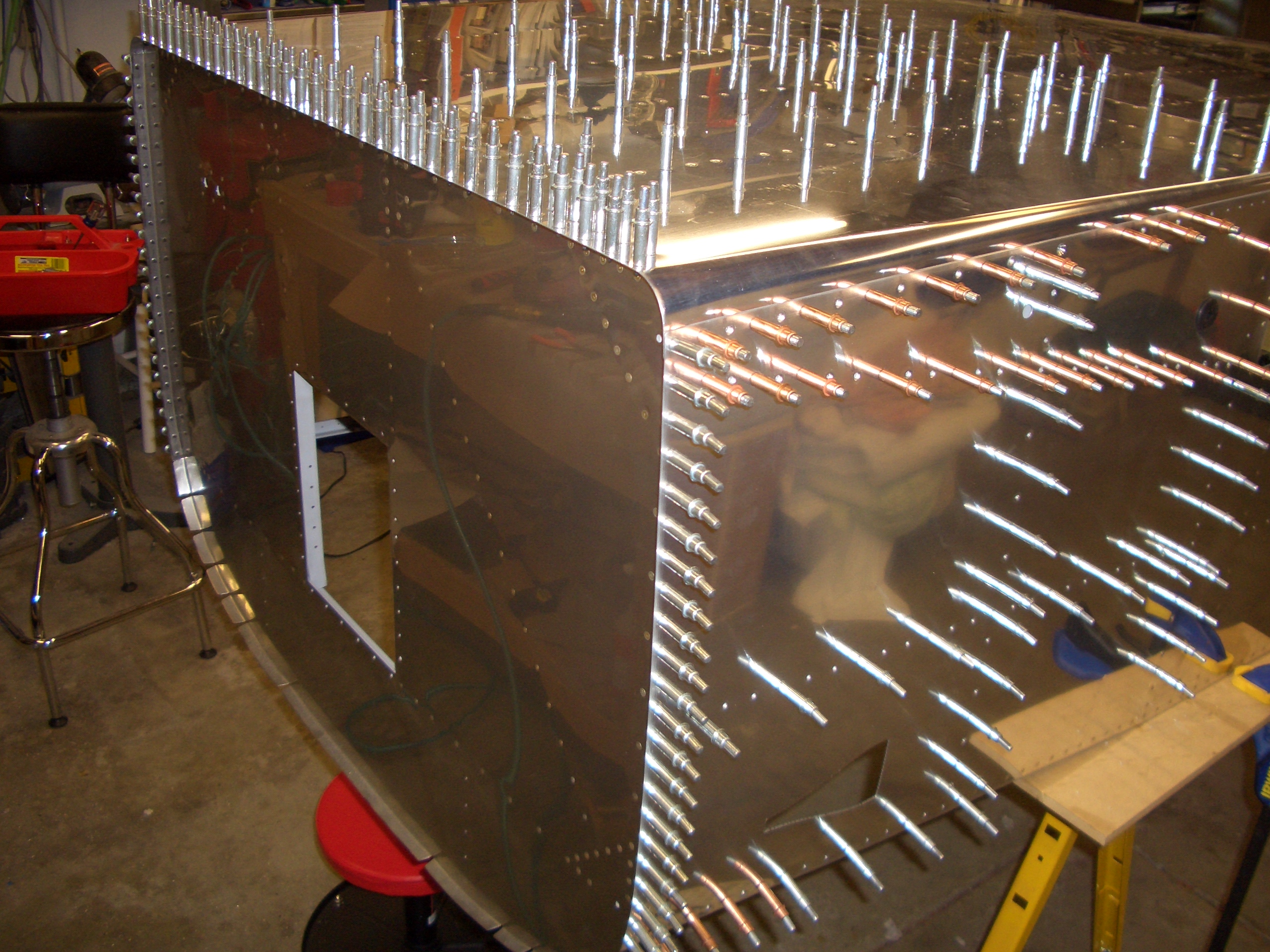 To ensure a good bond, I put a cleco in every hole around the firewall (including the double row along the bottom skin. I also clecoed in the final two bottom skin stiffeners. This thing is ready to rivet together. Andre is planning on stopping by on Sunday. With any luck, we can finish this up and flip the fuselage.