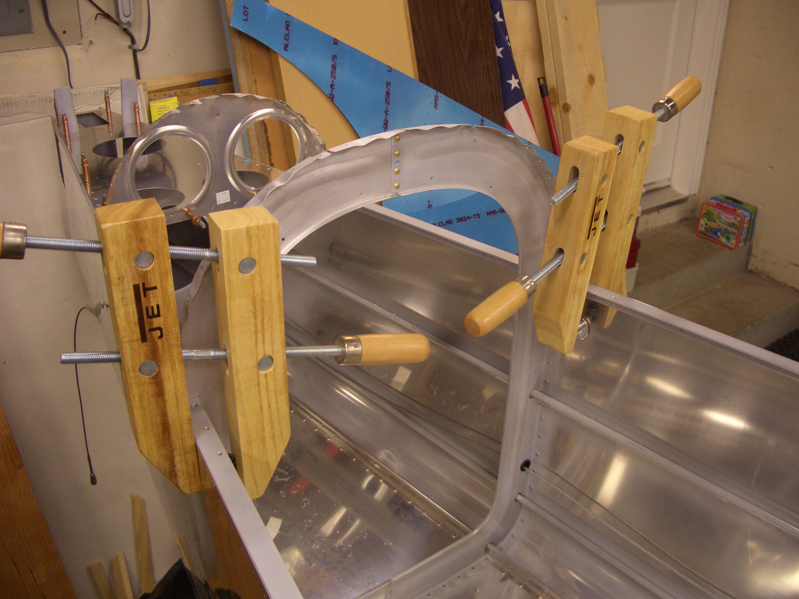 I mixed up a small batch of proseal and bonded/clamped these in position. I installed the 90º adaptors in the ports before doing this so that I could ensure both of them are pointing upward. I’m not going to use any rivets to secure the ports since the proseal is plenty strong to secure these.