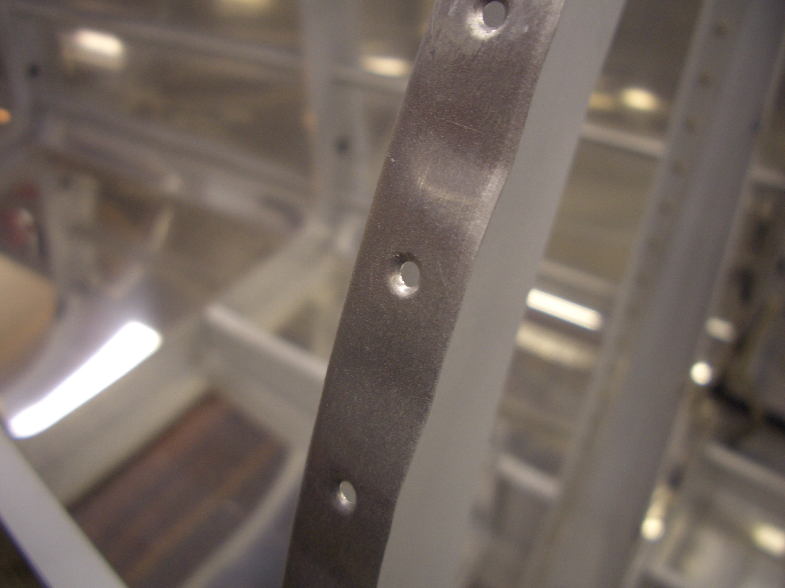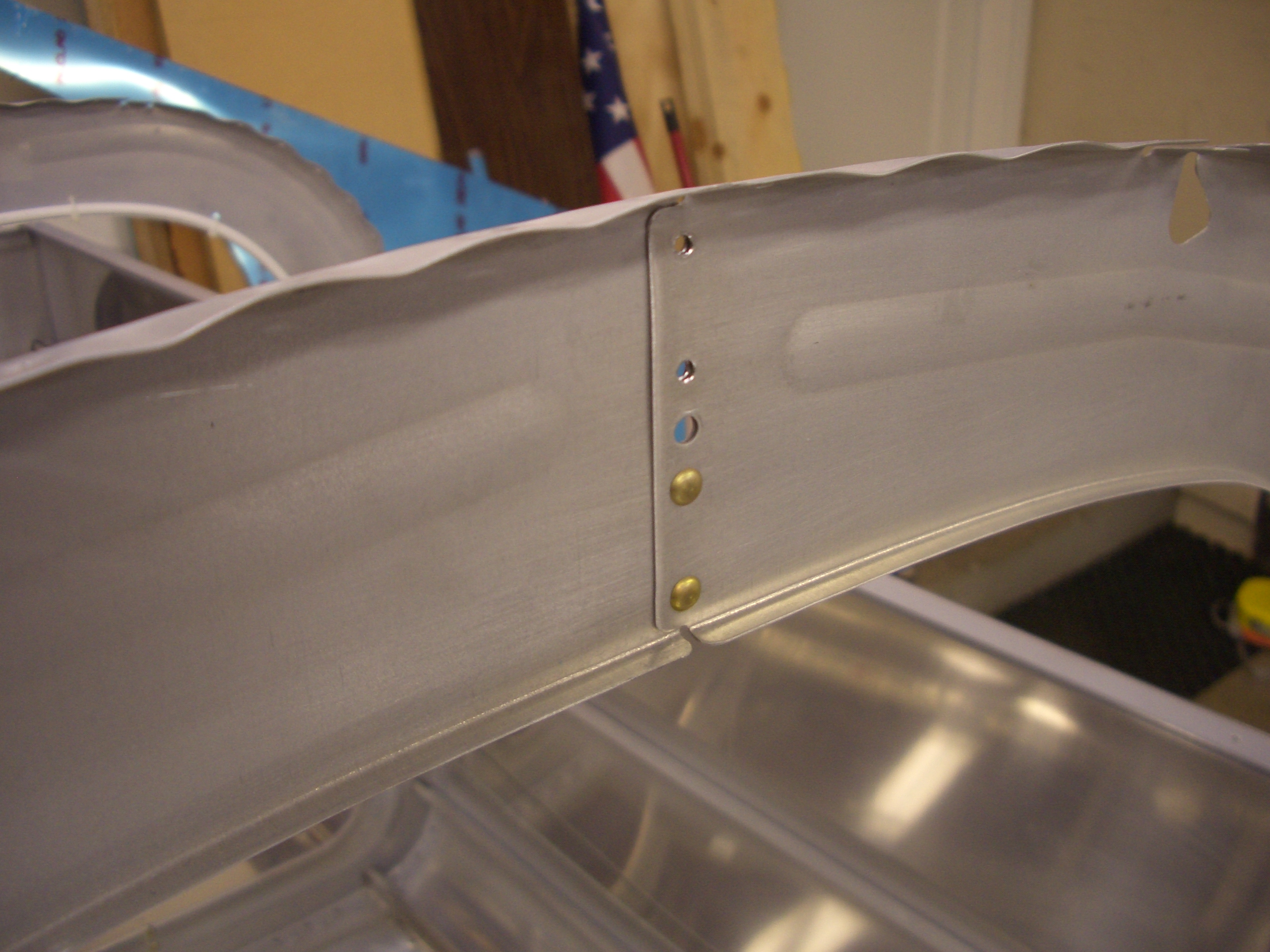 After fabricating the clip that ties the top center rib to the F-707 bulkhead, the lower two rivets can be squeezed.