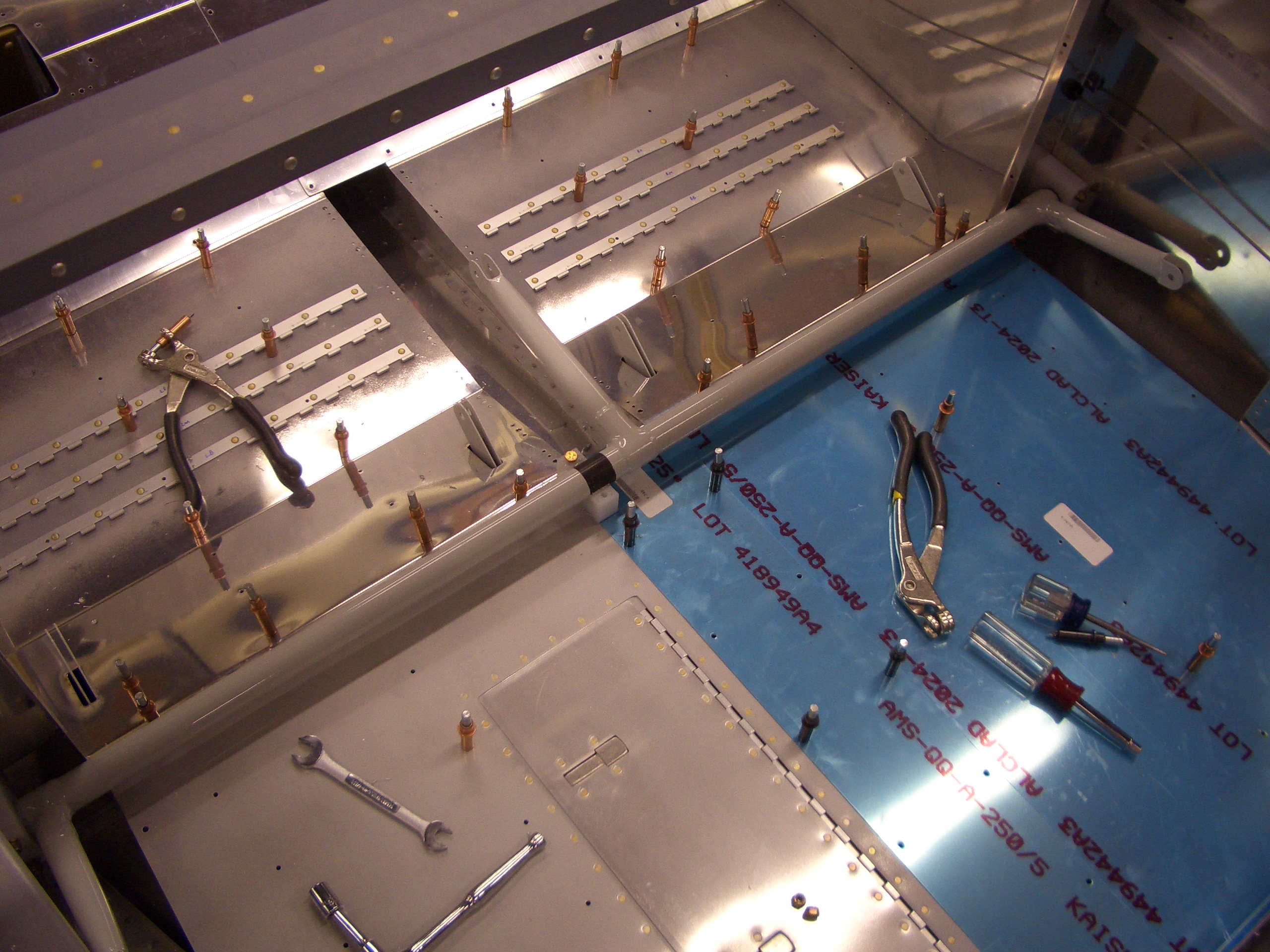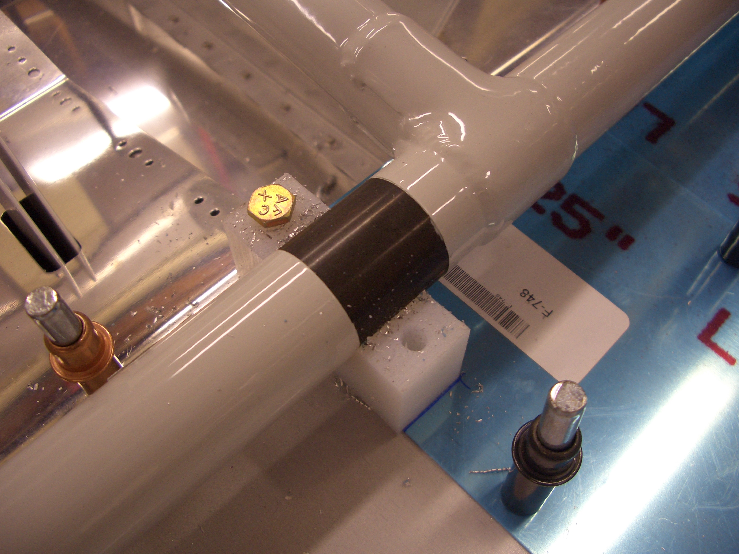 Next up, I installed the flap weldment into the plane so that the center bearing block could be used as a guide to drill the floor and ribs