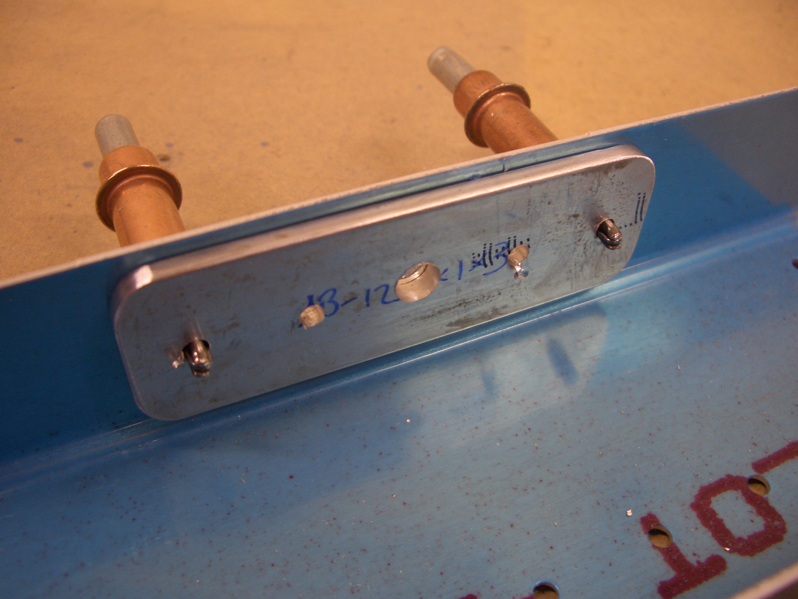 The side of the flap support need to be reinforced where the upper end of the flap motor mounts. I match drilled this to the channel and reamed the center hole out to 1/4″.