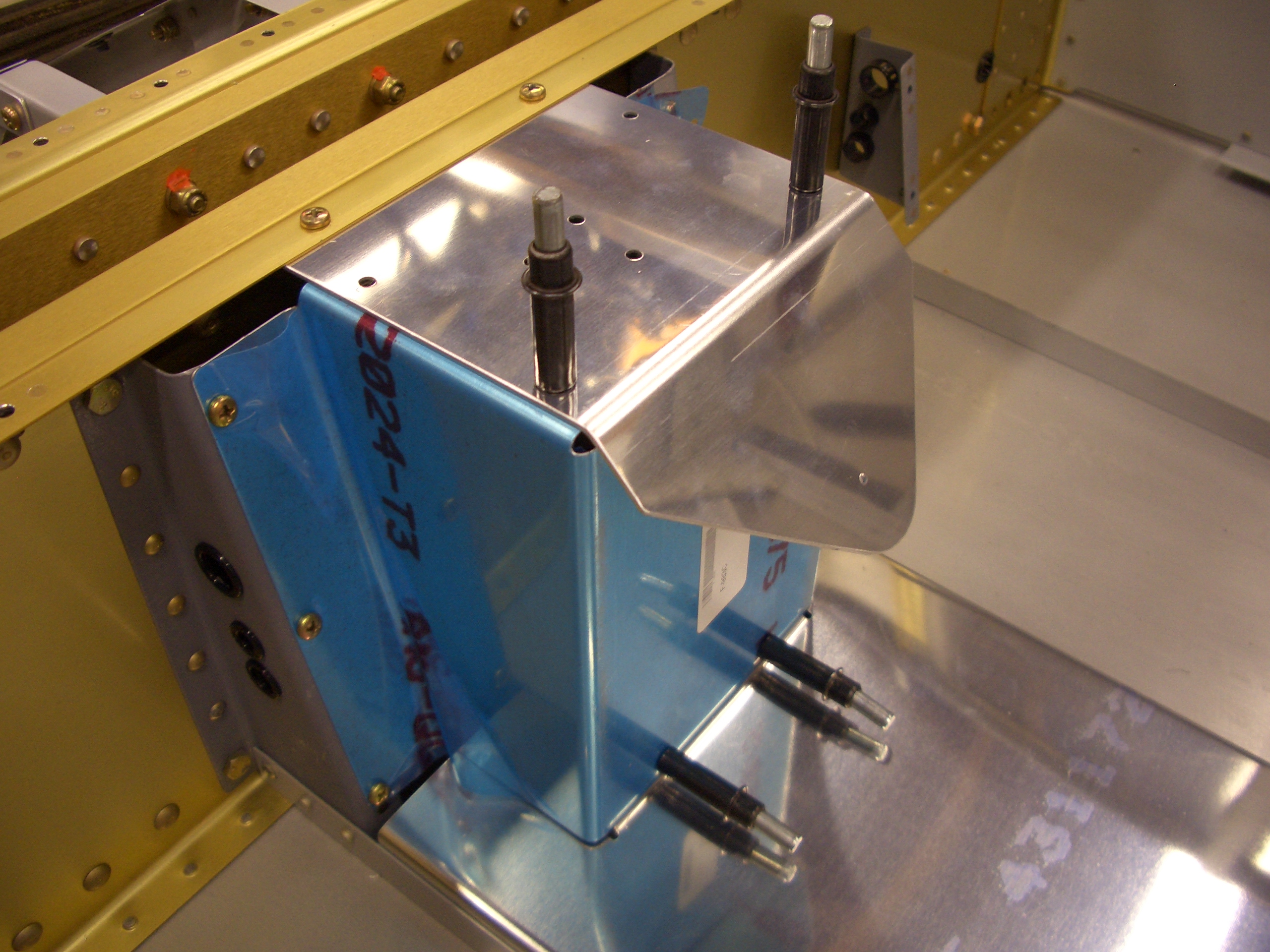 I was planning on cutting off the angled triangular portion since I’m not using the manual elevator trim.  I noticed however that that would leave a large gap between the fuel selector bracket and the vertical cover.  Instead, I flipped the bracket over and will cut off the triangular flange slightly forward of the bend to cover the gap.