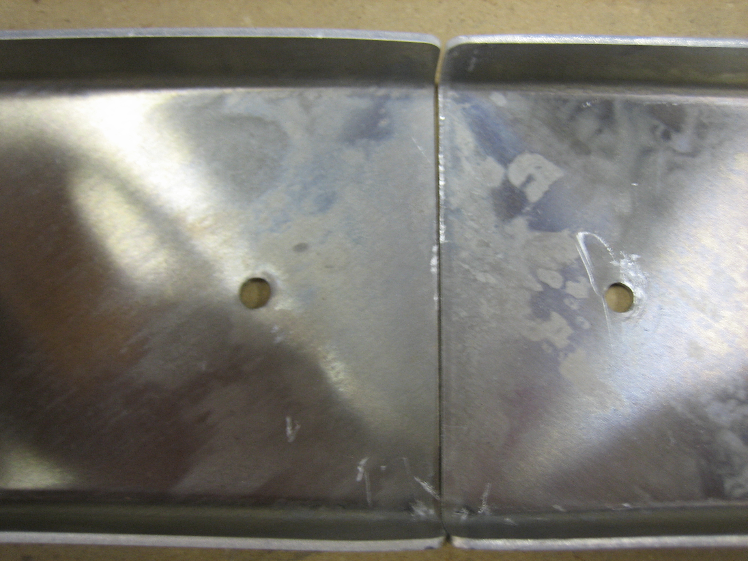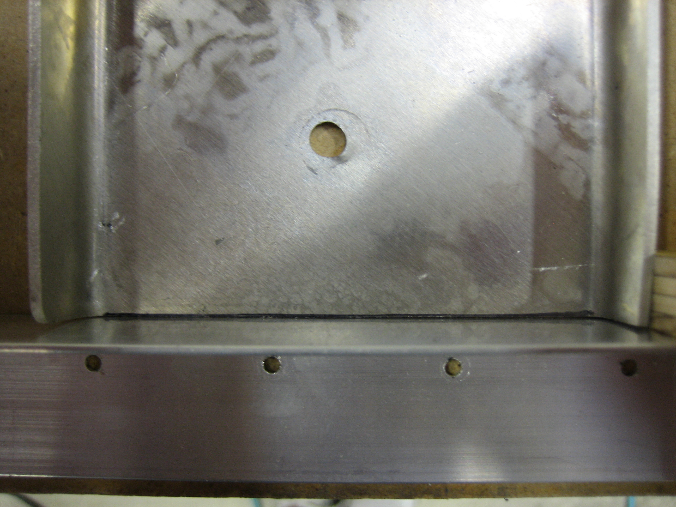 Since I’m waiting on an order from Aircraft Spruce for new 5052 brake lines, I decided to get started on the cabin frame. I clamped a straight edge to the bench and then clamped wooden blocks to the vertical legs to define the overall width of the frame.
