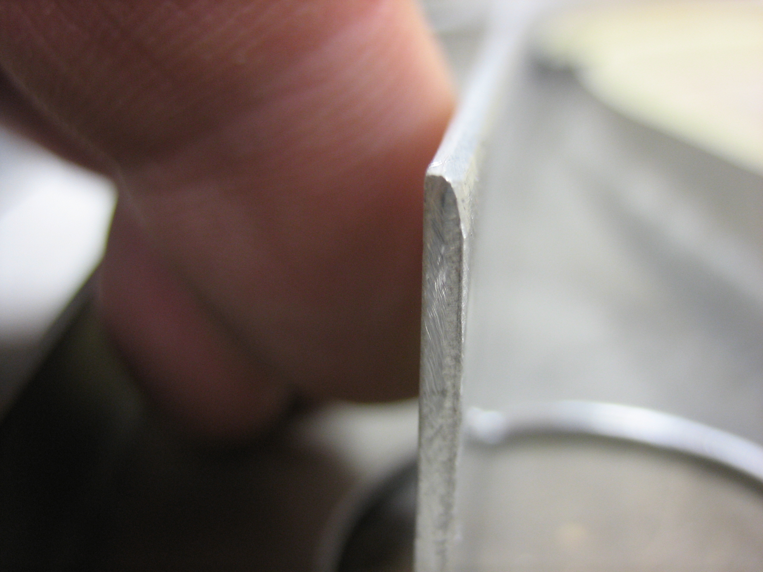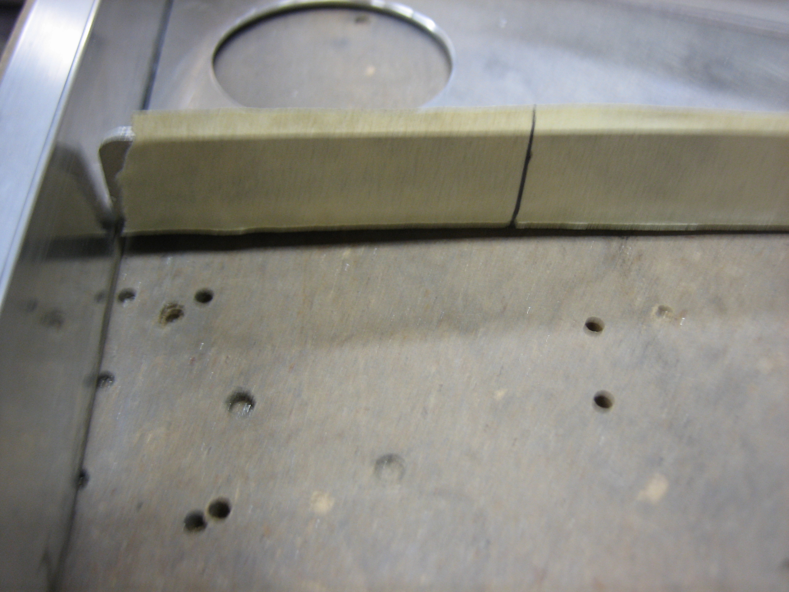 I rounded over the edges of the canopy frame joint strips. These join the front and back halves of the cabin frame. The radius is necessary so that the halves can be pulled tightly together.