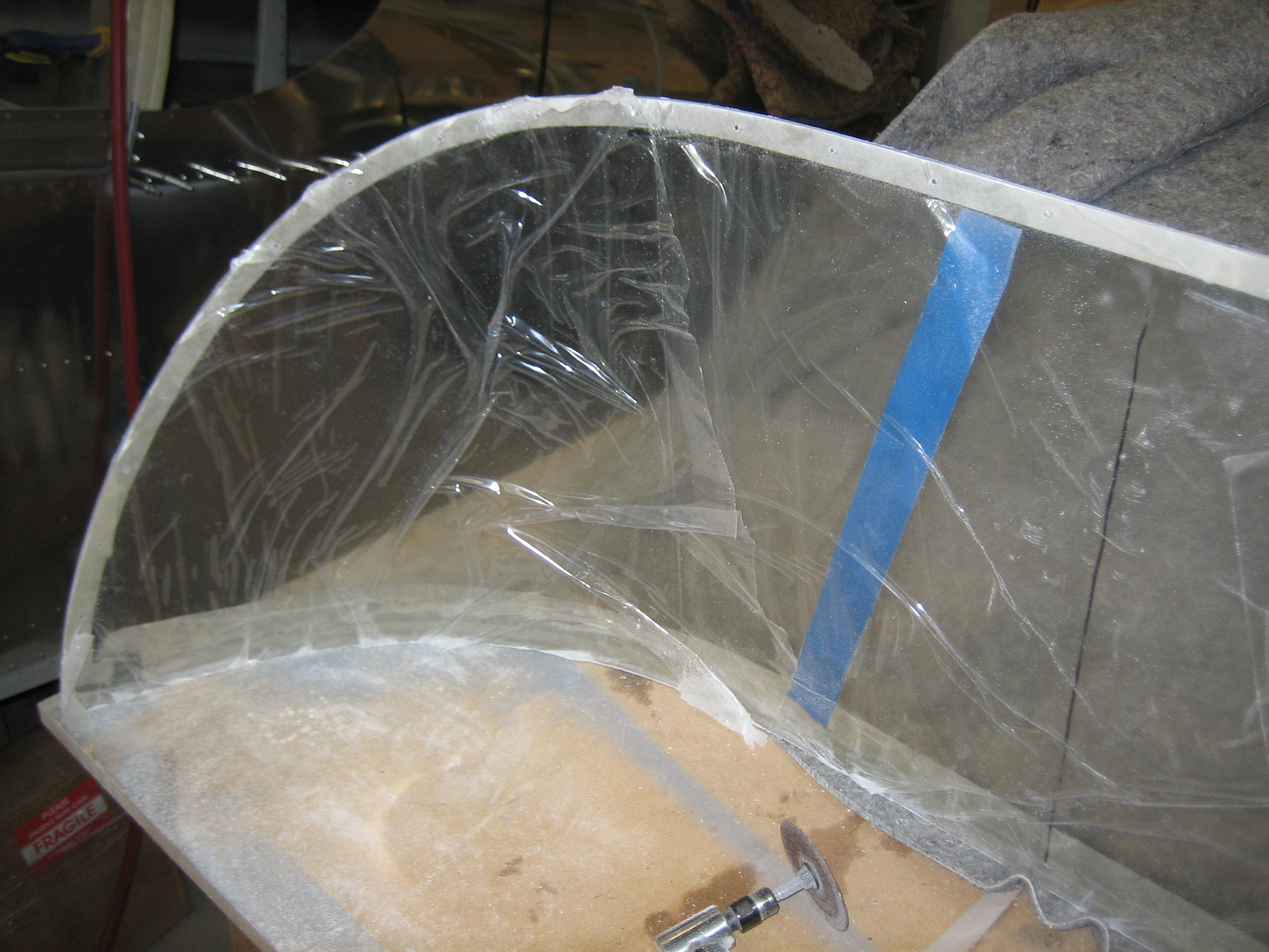 I finally finished the bathroom remodel, so I can get back to the plane. When I left off, I had marked but not trimmed the front edge of the rear window. I broke out the cutting wheel and pretty quickly trimmed this off.