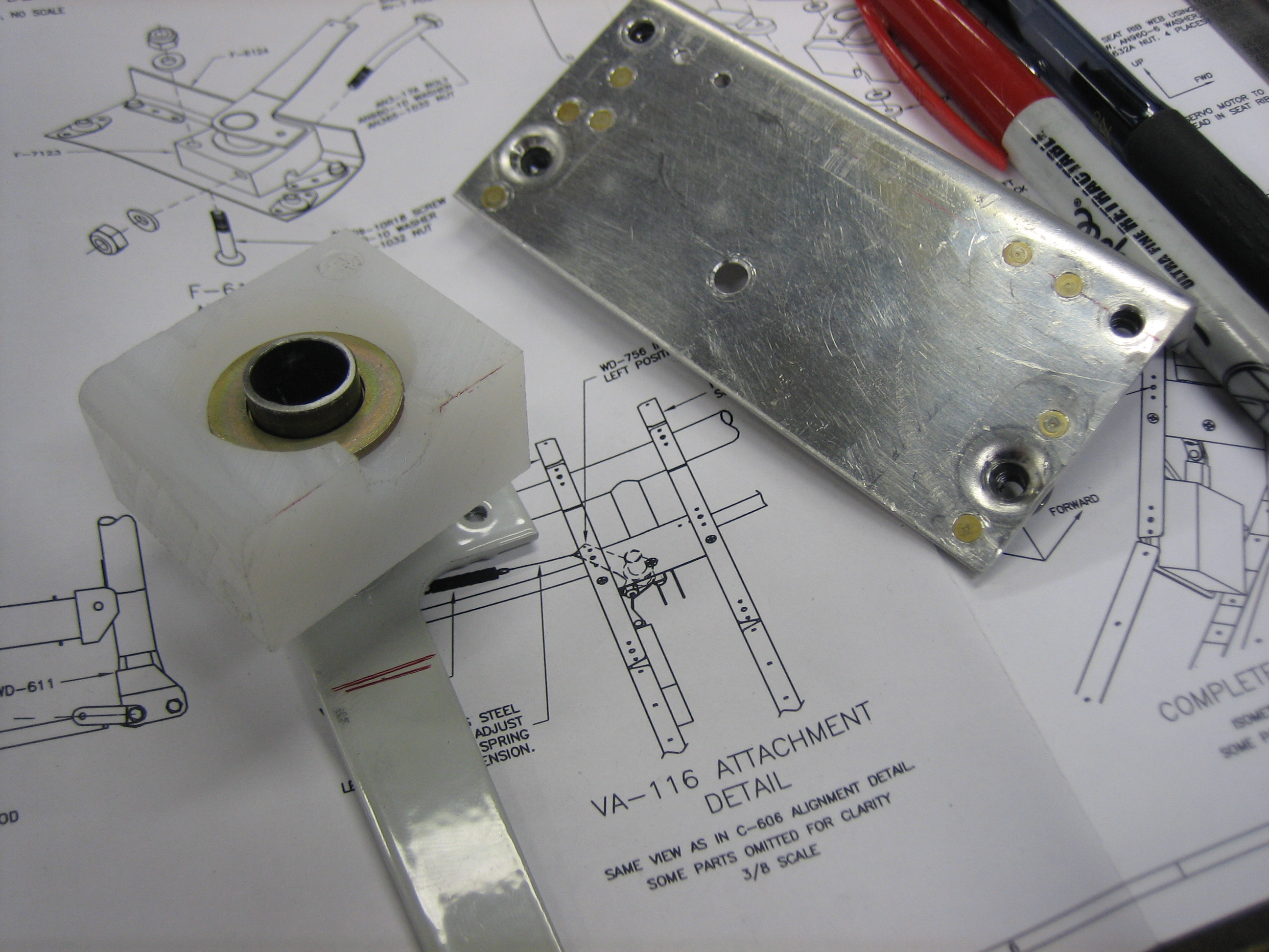 Afterward, I decided to get started on the aileron trim. First up is to fit the bushing block into the bracket.