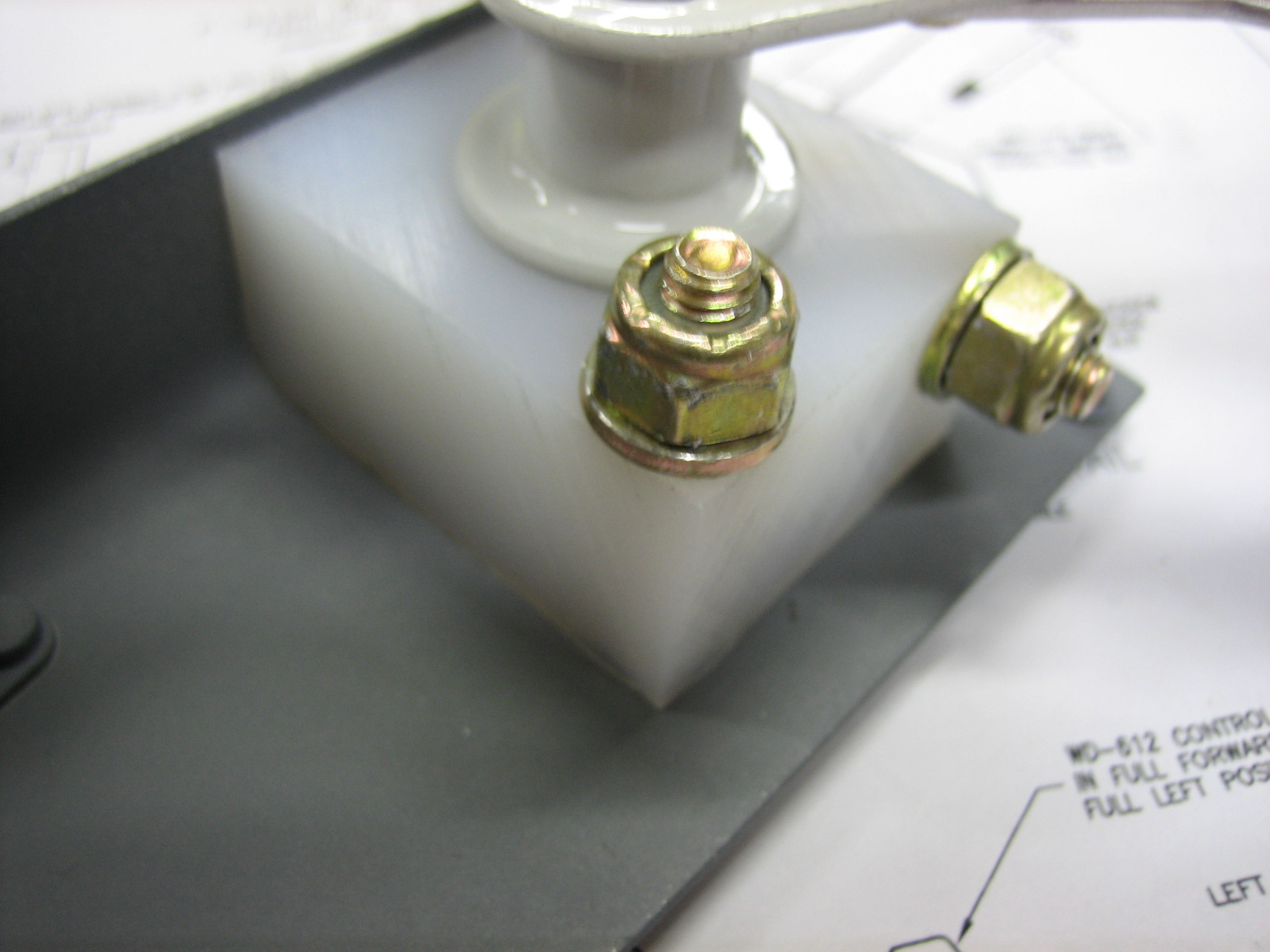 The bushing block is bolted to the mounting flange with one #10 screw and one AN3 bolt through the holes I drilled yesterday.