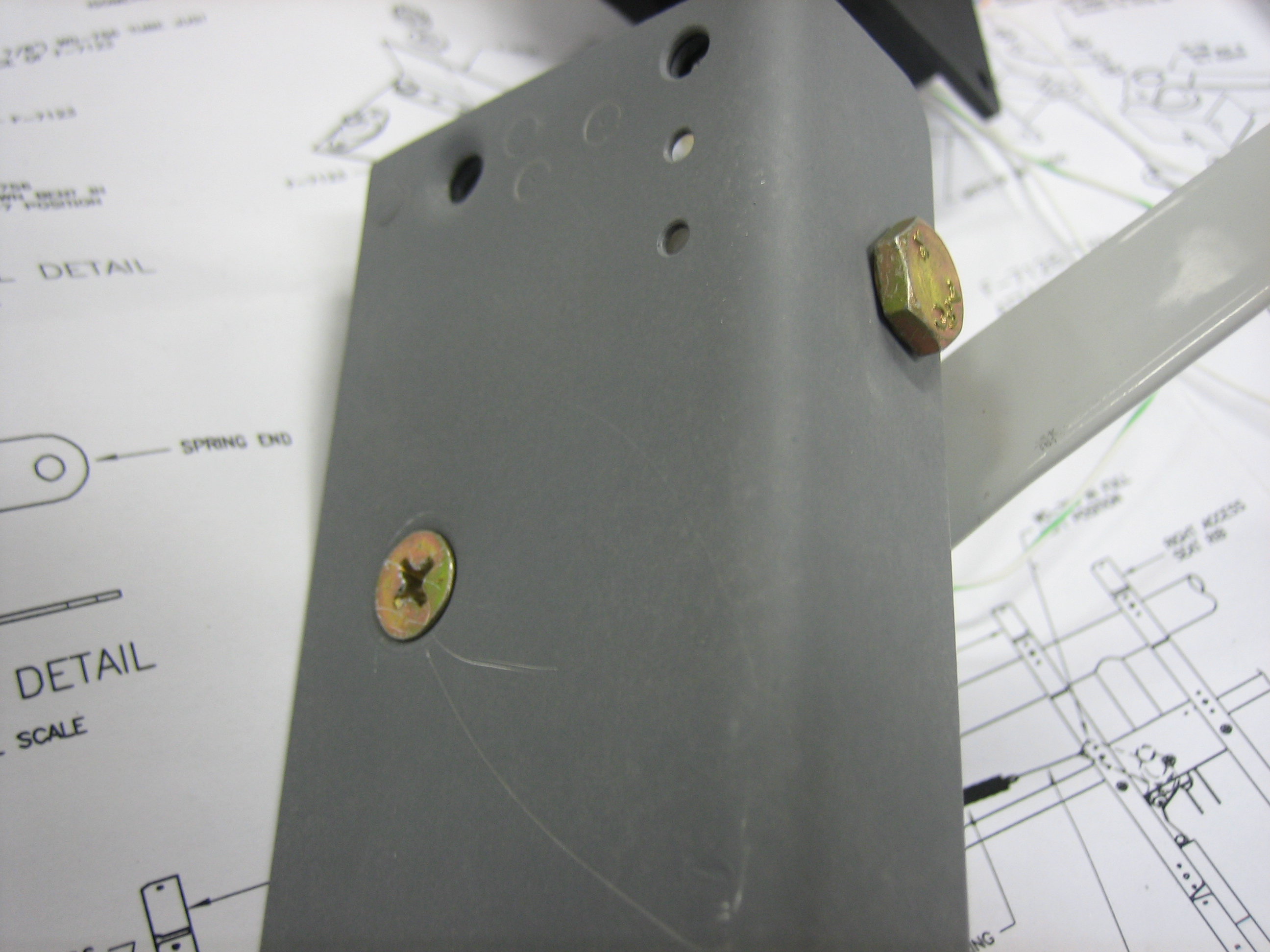 The hole for the #10 screw was dimpled in the mounting flange and the bushing was countersunk since the seat pan gets installed right above this and there wouldn’t be clearance for a bolt head.  The other hole can just use a normal bolt since there are no space considerations.