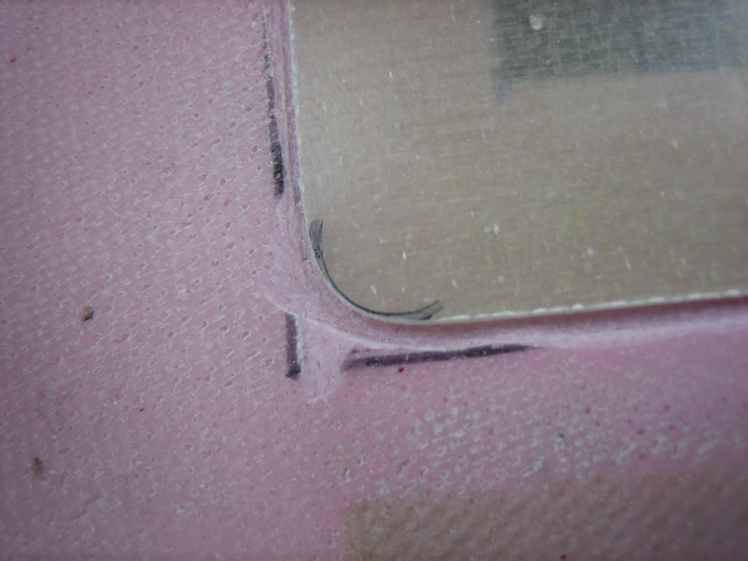 I then trimmed the door itself and radiused the corners so that the door fits down nicely in the cutout. The trims on the cowl itself are a little sloppy as you can see below, but that won’t matter. Once I have the door exactly where I like it, I’ll put some structural filler here and use the door itself to mold it perfectly.