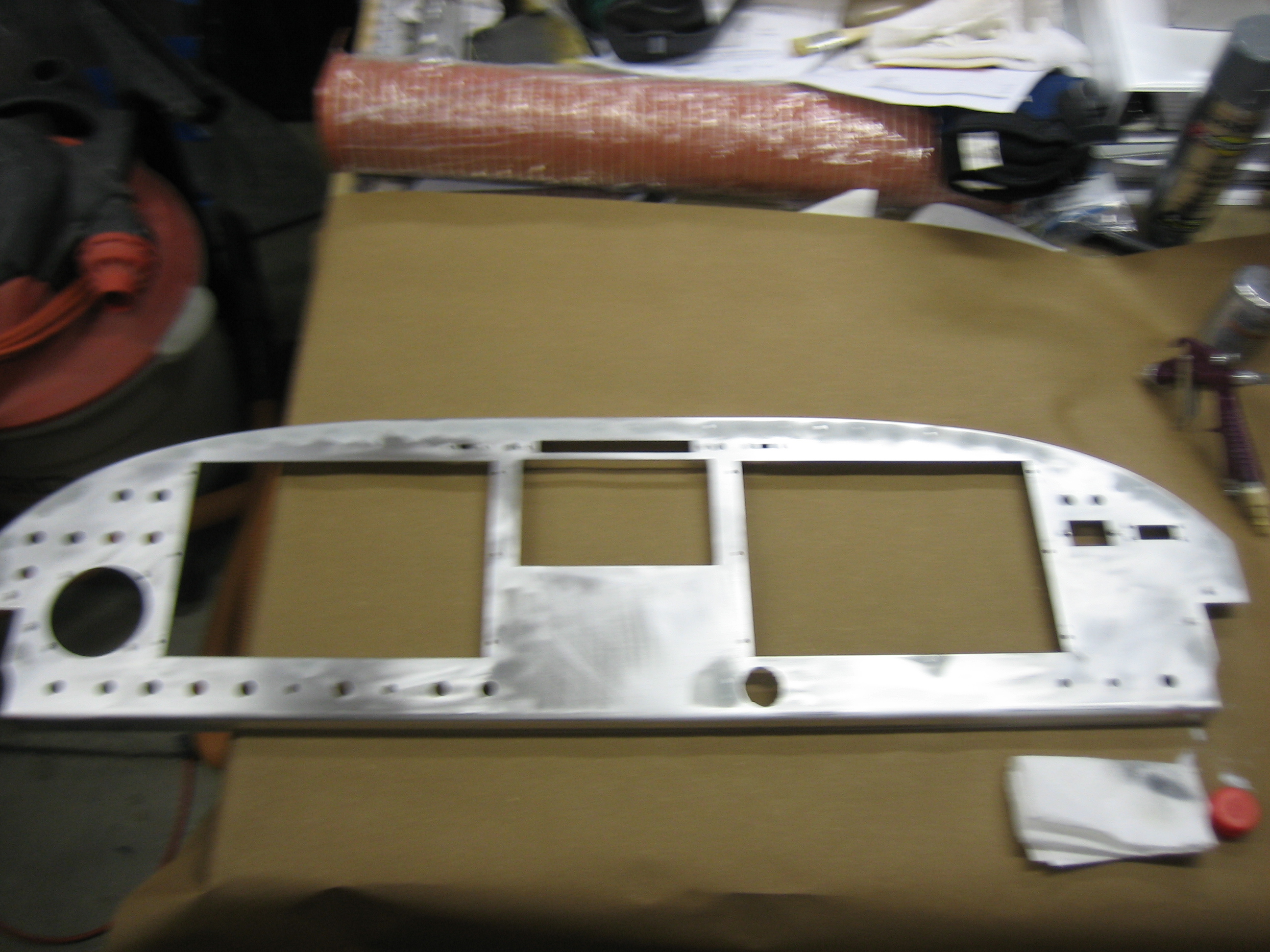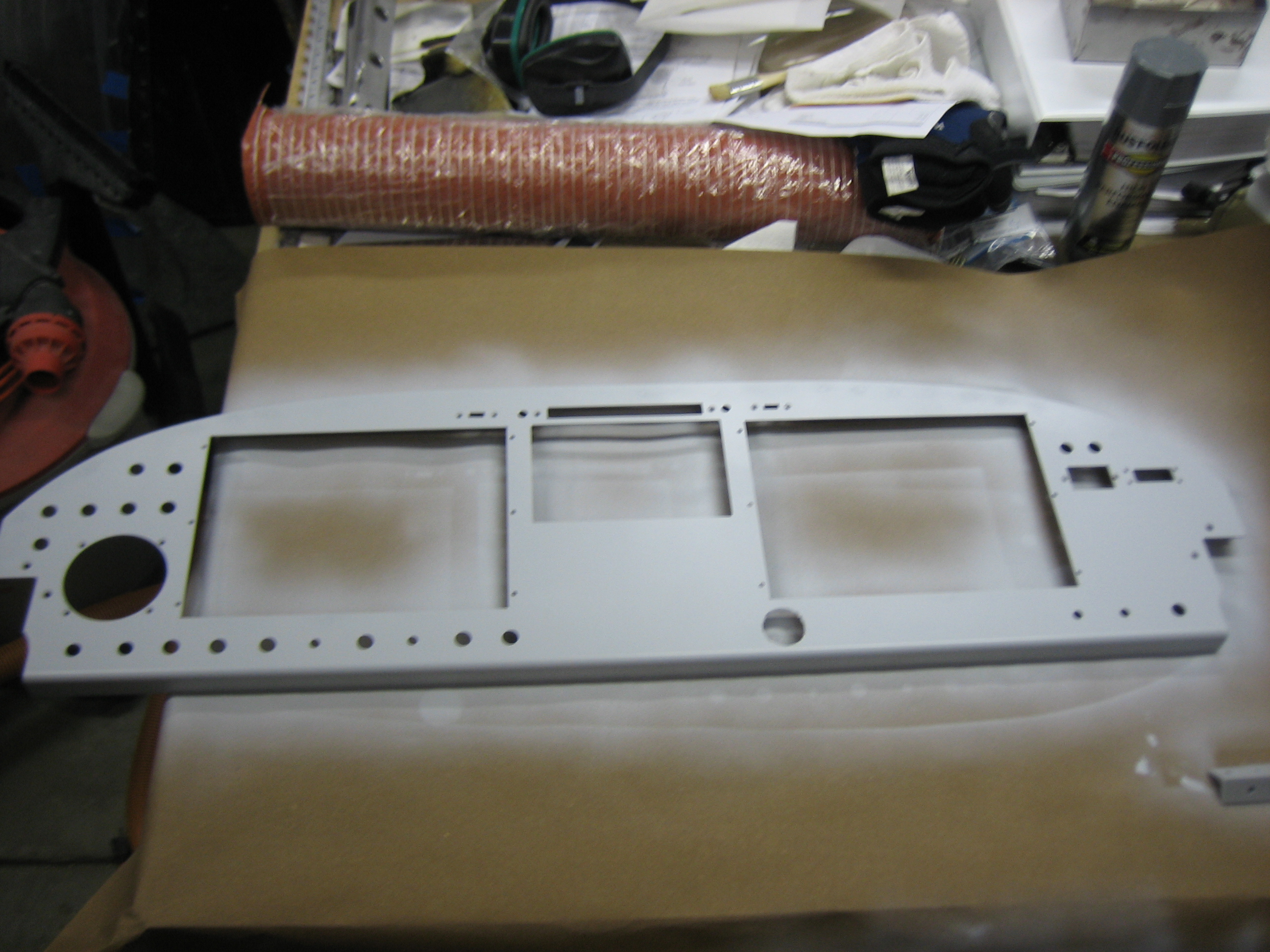 Sorry for the blurry picture, but I primed the instrument panel tonight. I applied a little filler last night and first had to sand it smooth.