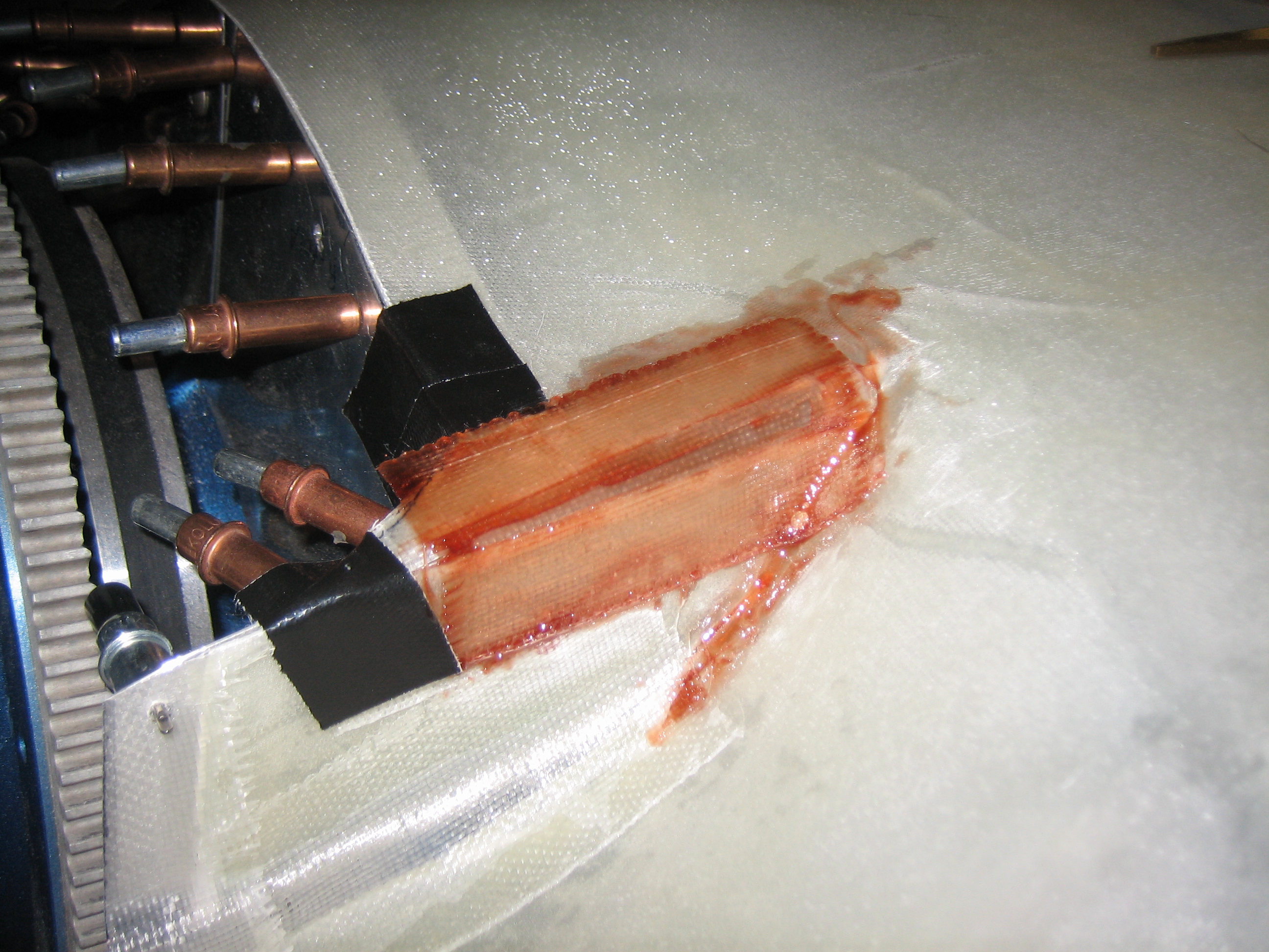 The left side of the plenum needed one more adjustment so that it lays flush with the mounting angles. I cut the plenum and laid up a small piece of glass over the joint to tie it back together.