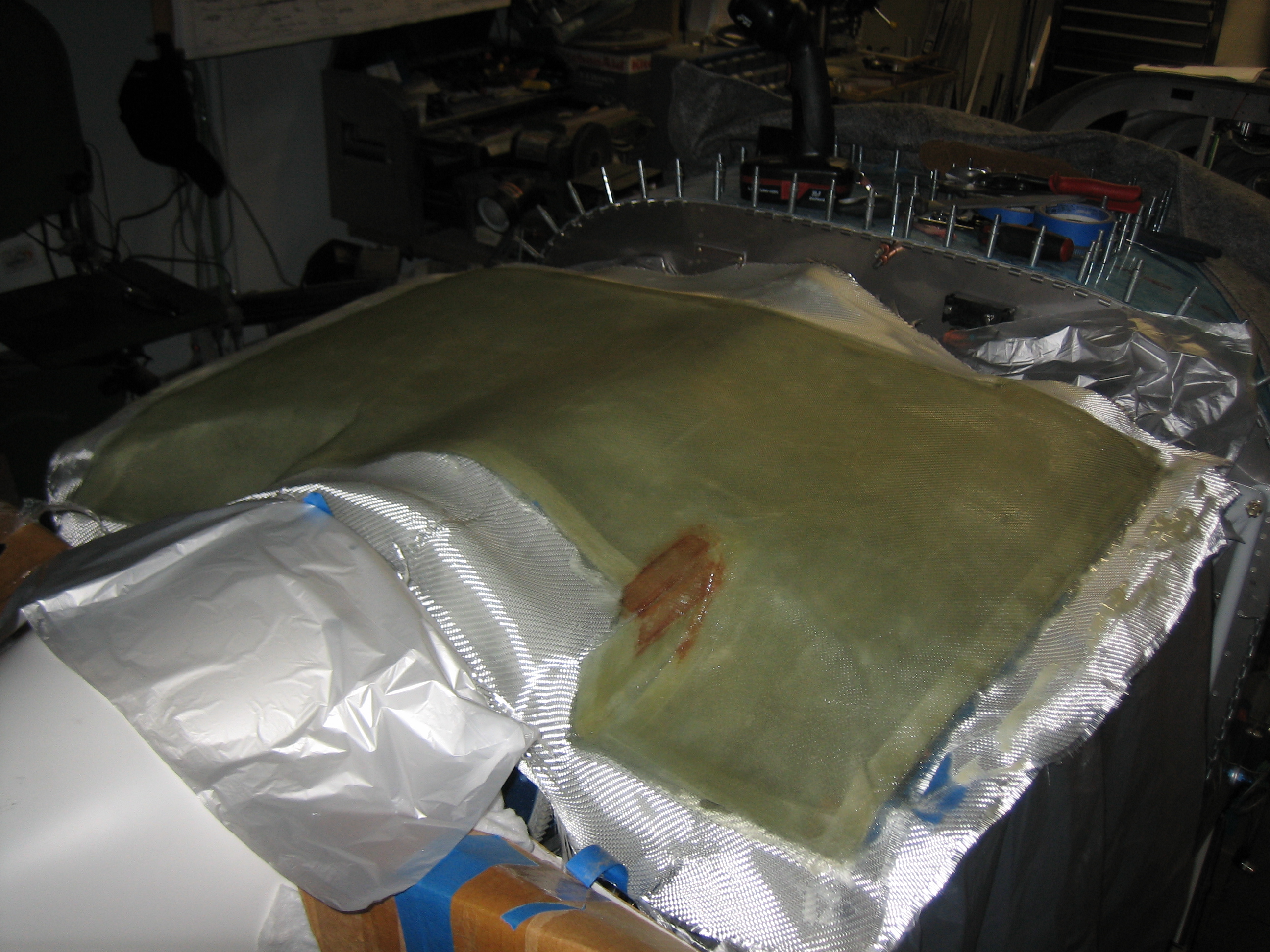 I then laid up three layers of 9 oz glass using the high-temp epoxy. I’ll see how stiff this is tomorrow and will add a layer of carbon fiber if it’s not stiff enough.