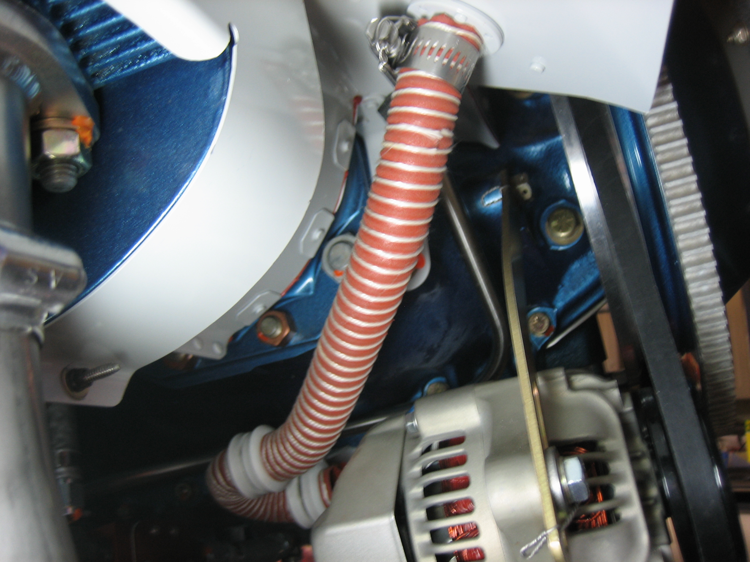 I hooked up the alternator cooling duct to the bottom of the baffles.