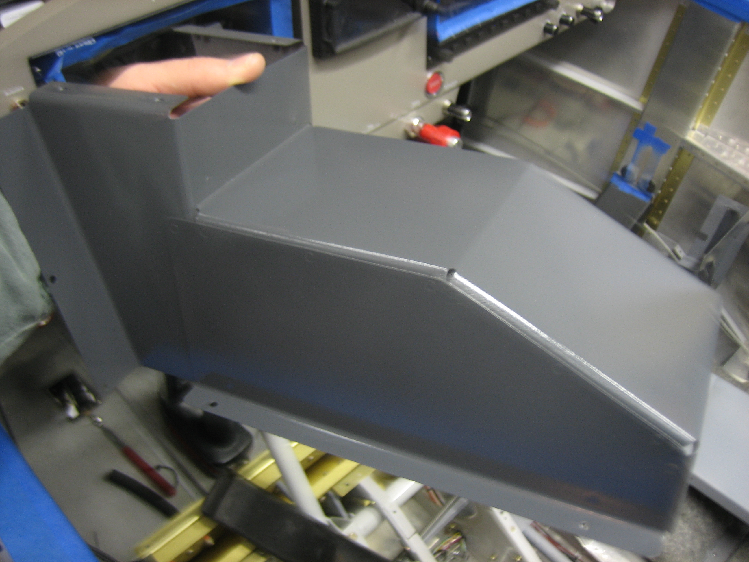 Painted Tunnel Components Leave a comment January 3, 2013 jason I stopped by the TechShop and painted all of the components that cover the tunnel. Here’s the doghouse that covers the fuel pump. I need to seal the heater box and then all of these components can be installed for good.
