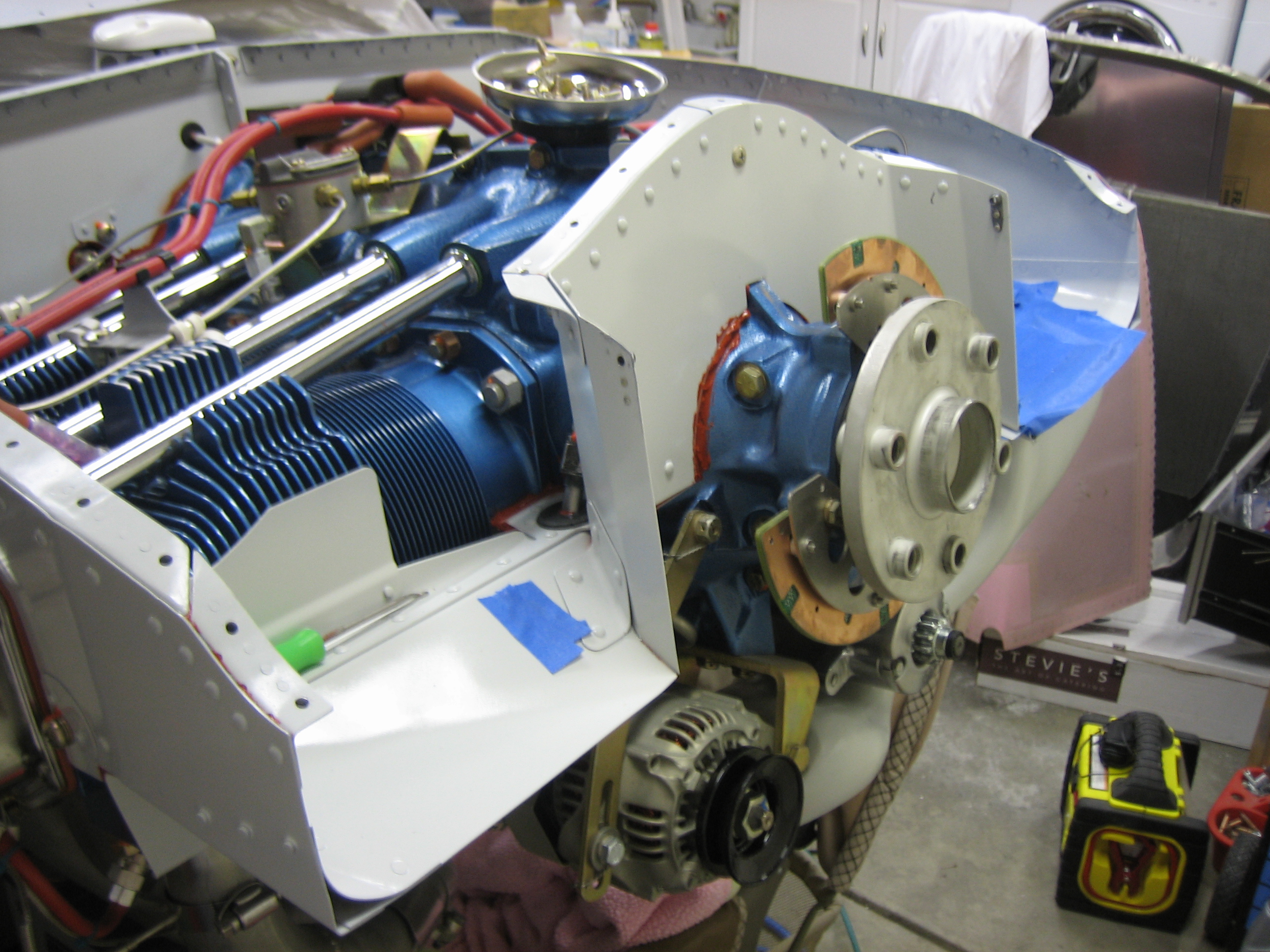 I had planned on removing the propeller for a while since it’s really in the way while wrapping up the plane. Doing this solo is kind of a pain, but can be done. With this out of the way, I can walk from one side of the plane to the other with the garage door down. It’s also going to make applying the rest of the RTV around the forward end of the baffles substantially easier.
