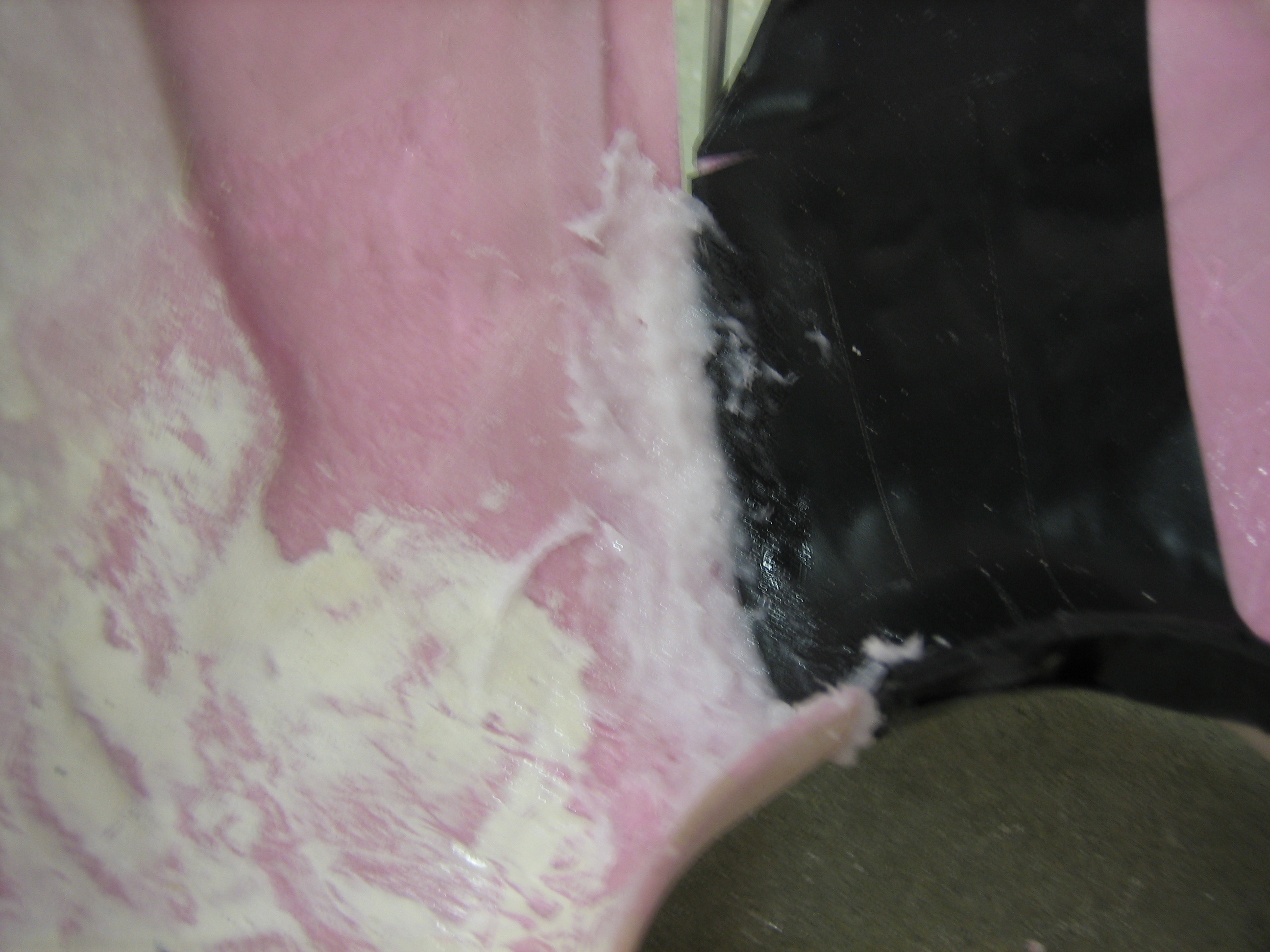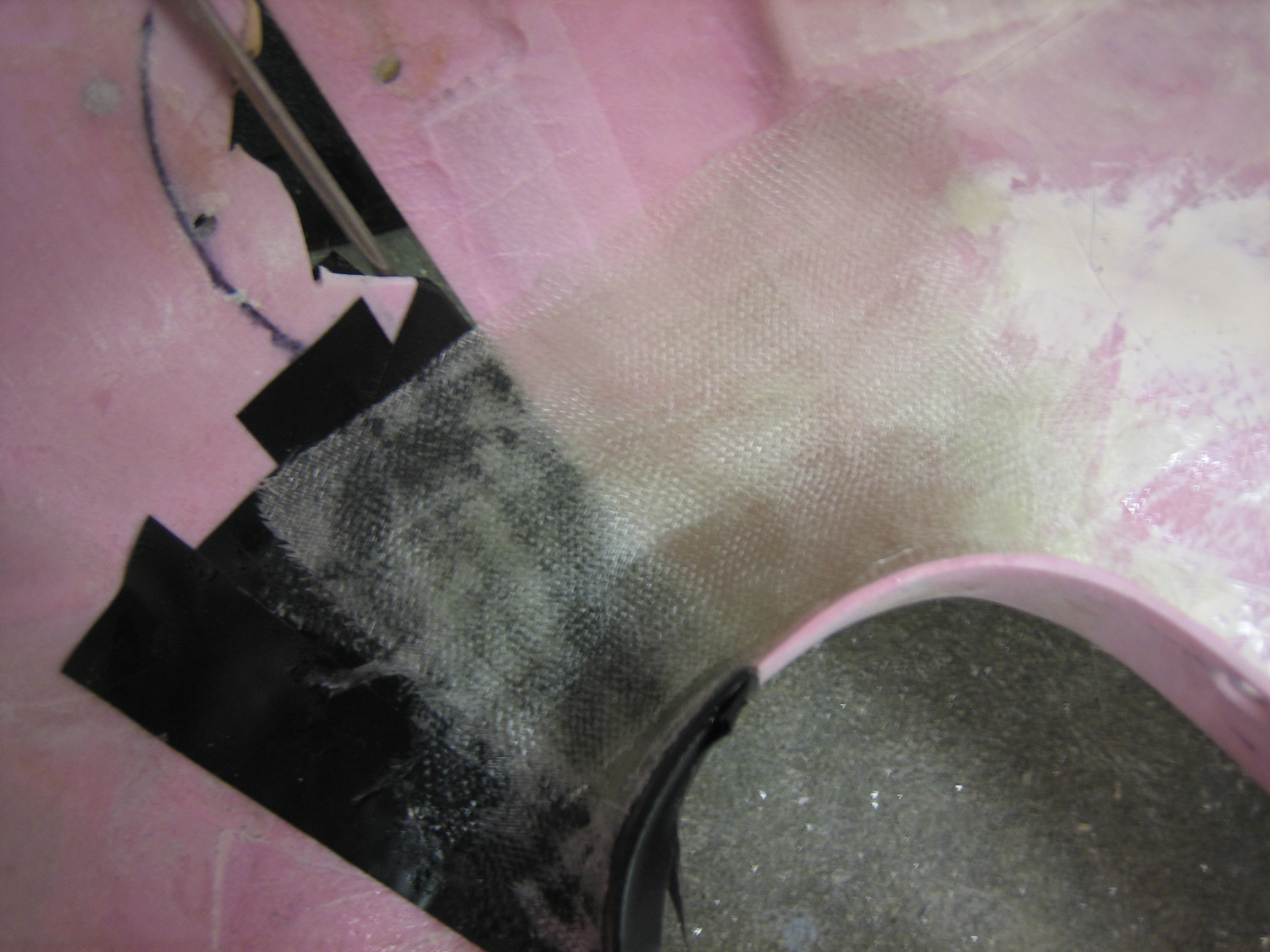 The lower cowl protruded beyond the upper cowl a small amount, so the glass wouldn’t have laid flat across the transition.  To fill in that step, I mixed up some epoxy/flox and made a small fillet.