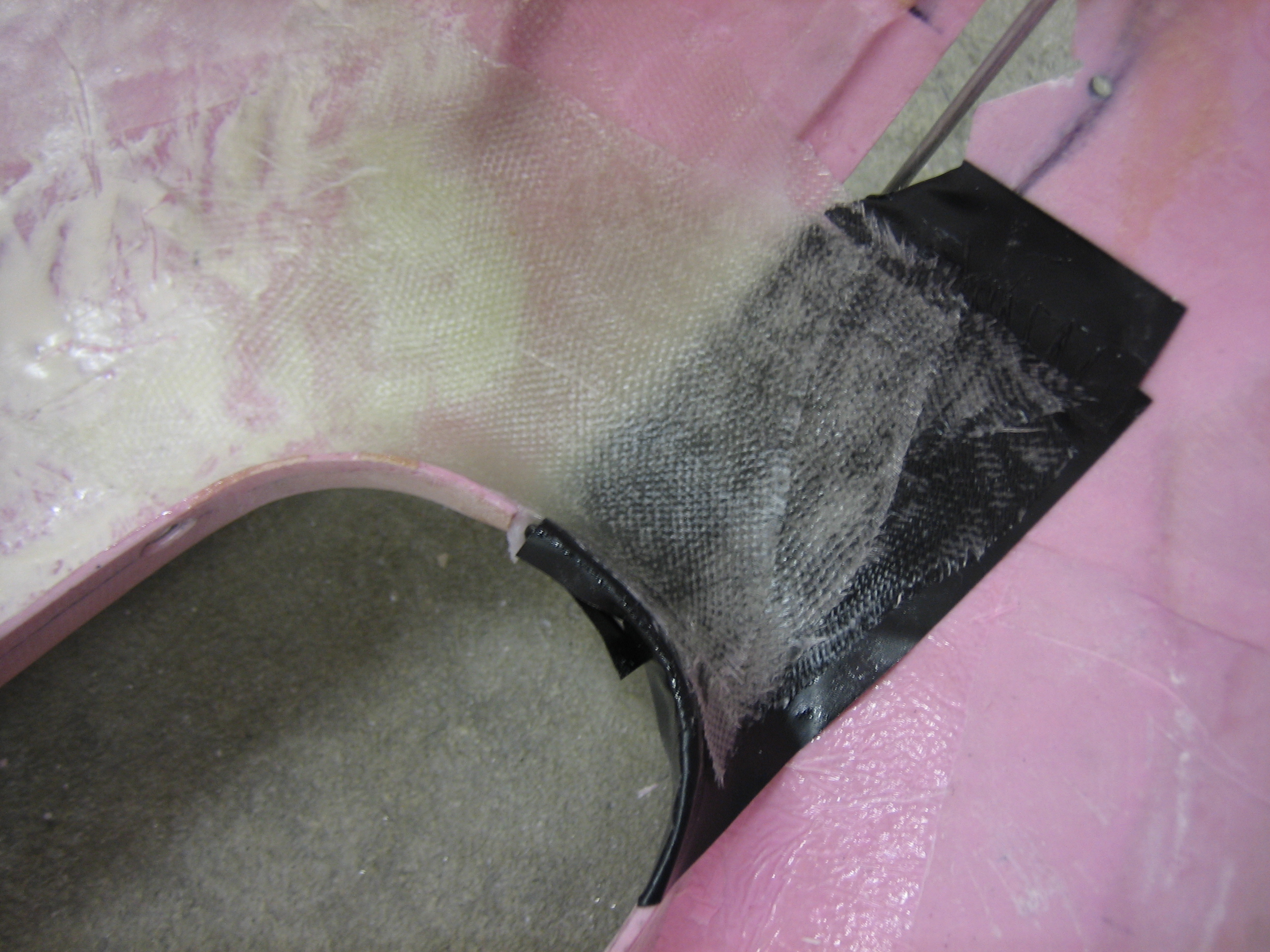 I then laid up about 6 layers of glass across the joint.  I’ll trim this back quite a bit after it cures.  It really only needs to stick up into the upper cowl 1/2″ or so.