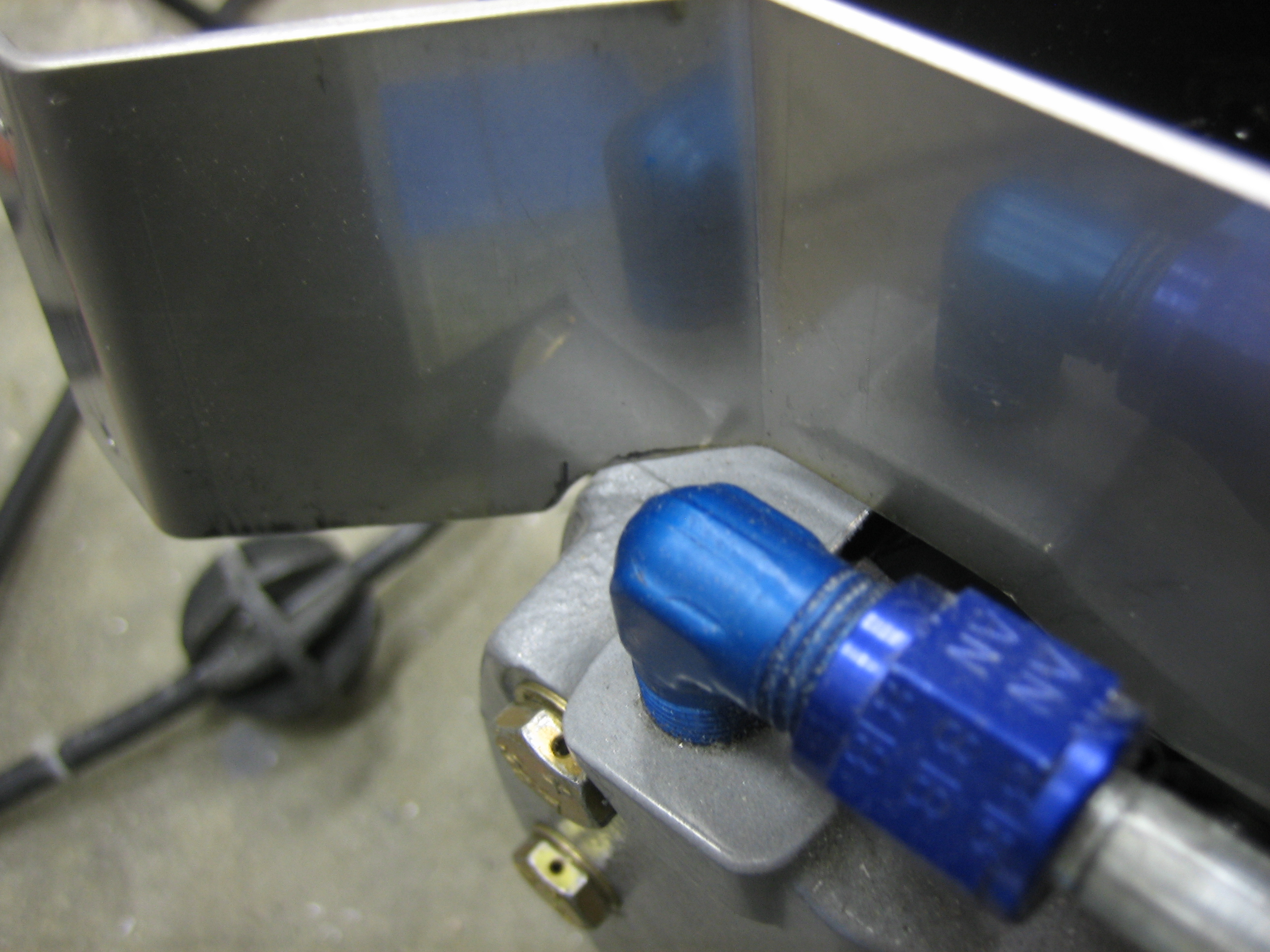 The bracket required about 1/4″ to be trimmed off where it passes over the caliper. This has about 1/8″ clearance all around to allow the caliper to move.