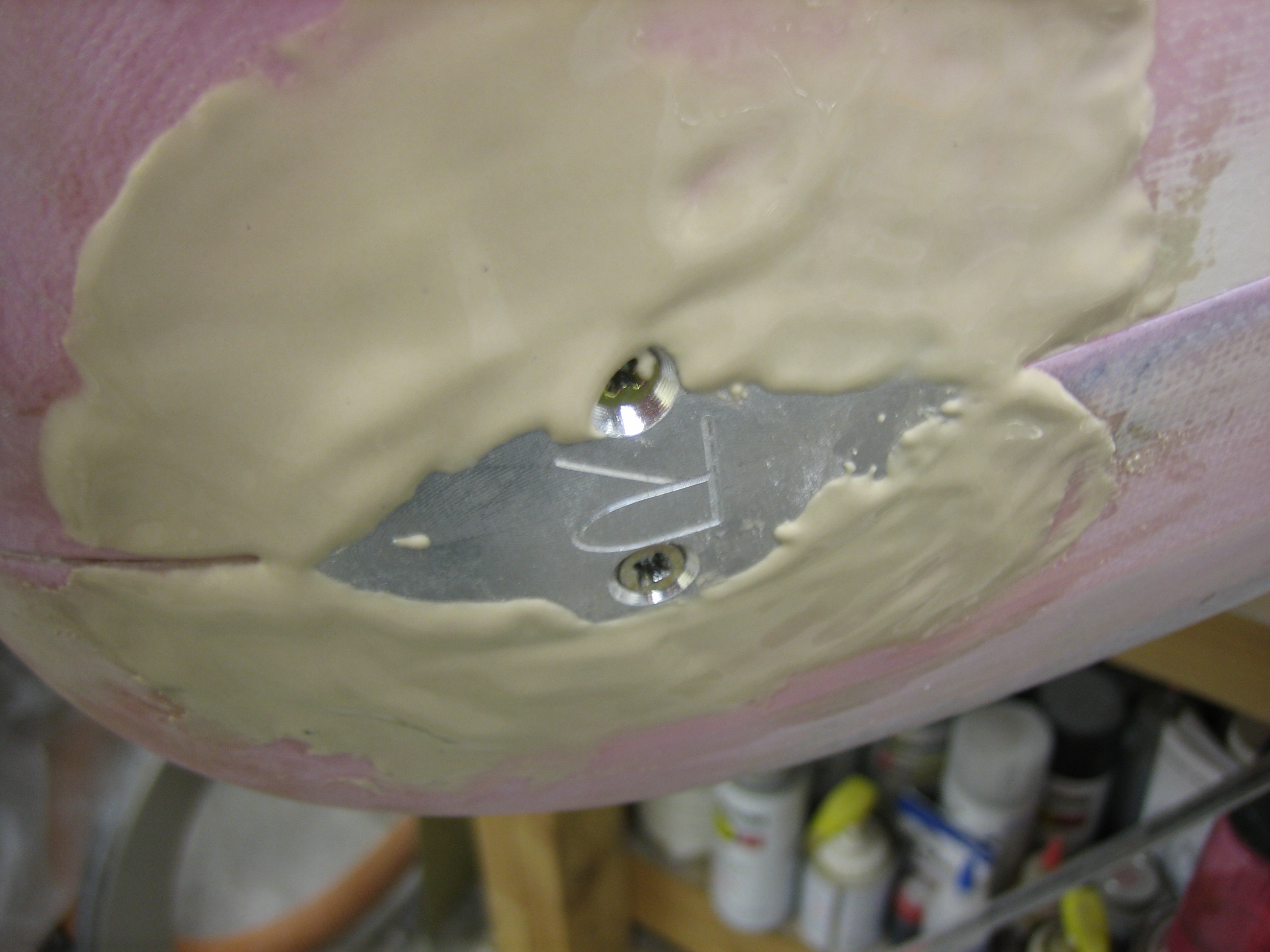 Filled Around Outside of Cowl Hinge Pin Covers Leave a comment March 7, 2013 jason I mixed up some epoxy with microlight and applied some filler around the outside edge of the hinge pin covers. After this cures, I’ll sand this flush with the covers in place to ensure they’re perfectly flush.