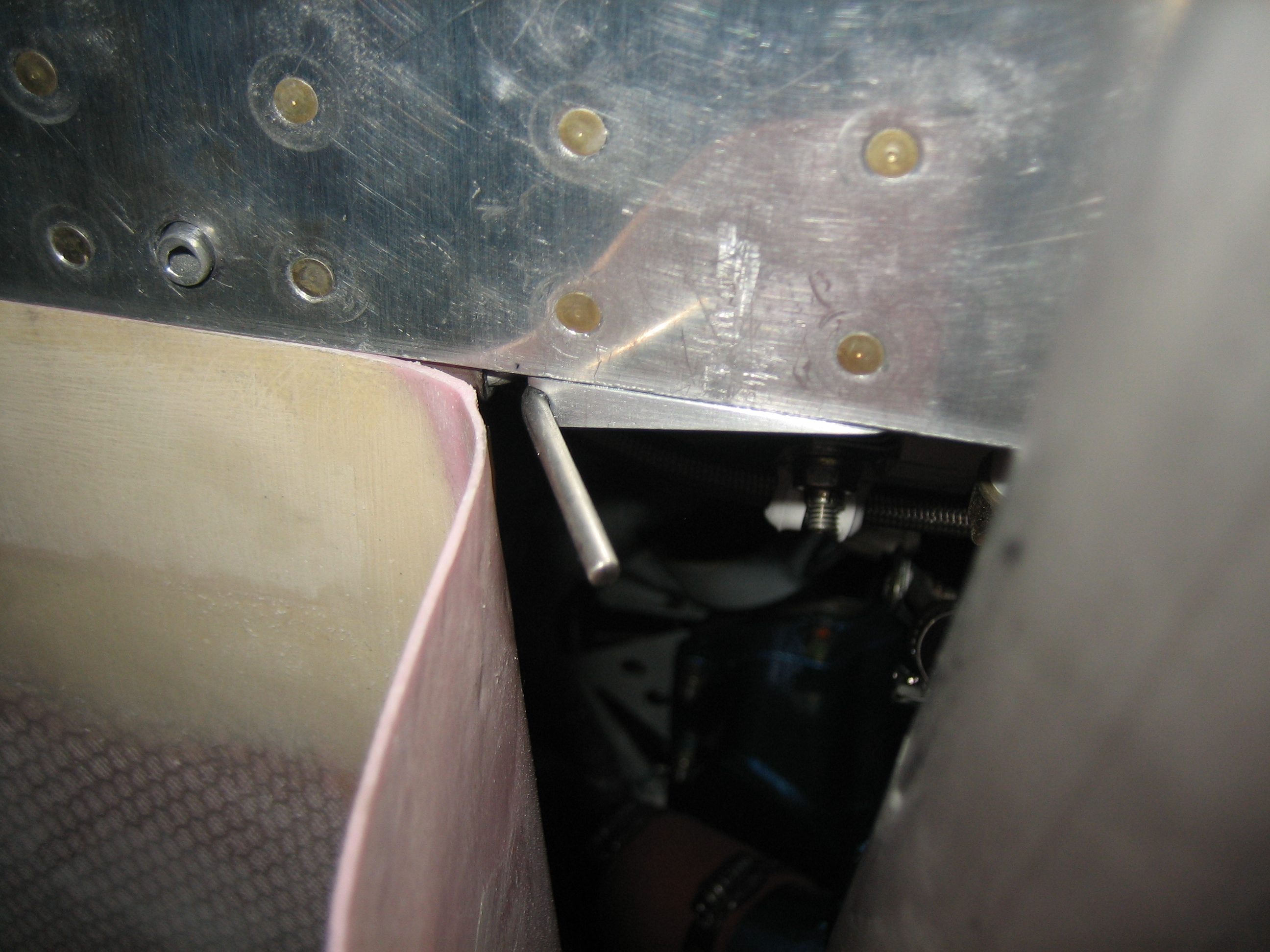 I did a little further trimming on the bottom cowling to make an even gap between it and the firewall along the bottom, then installed all of the retaining pins. Here’s all you see when you look up into the cowl exit. Overall, I’m fairly happy with these. The only complaint I have is that it’s fairly challenging to get the pins started because they have to lay just on the other side of these retaining clips. I think I’ll get quicker at it, but it took me several minutes just to get these started tonight.