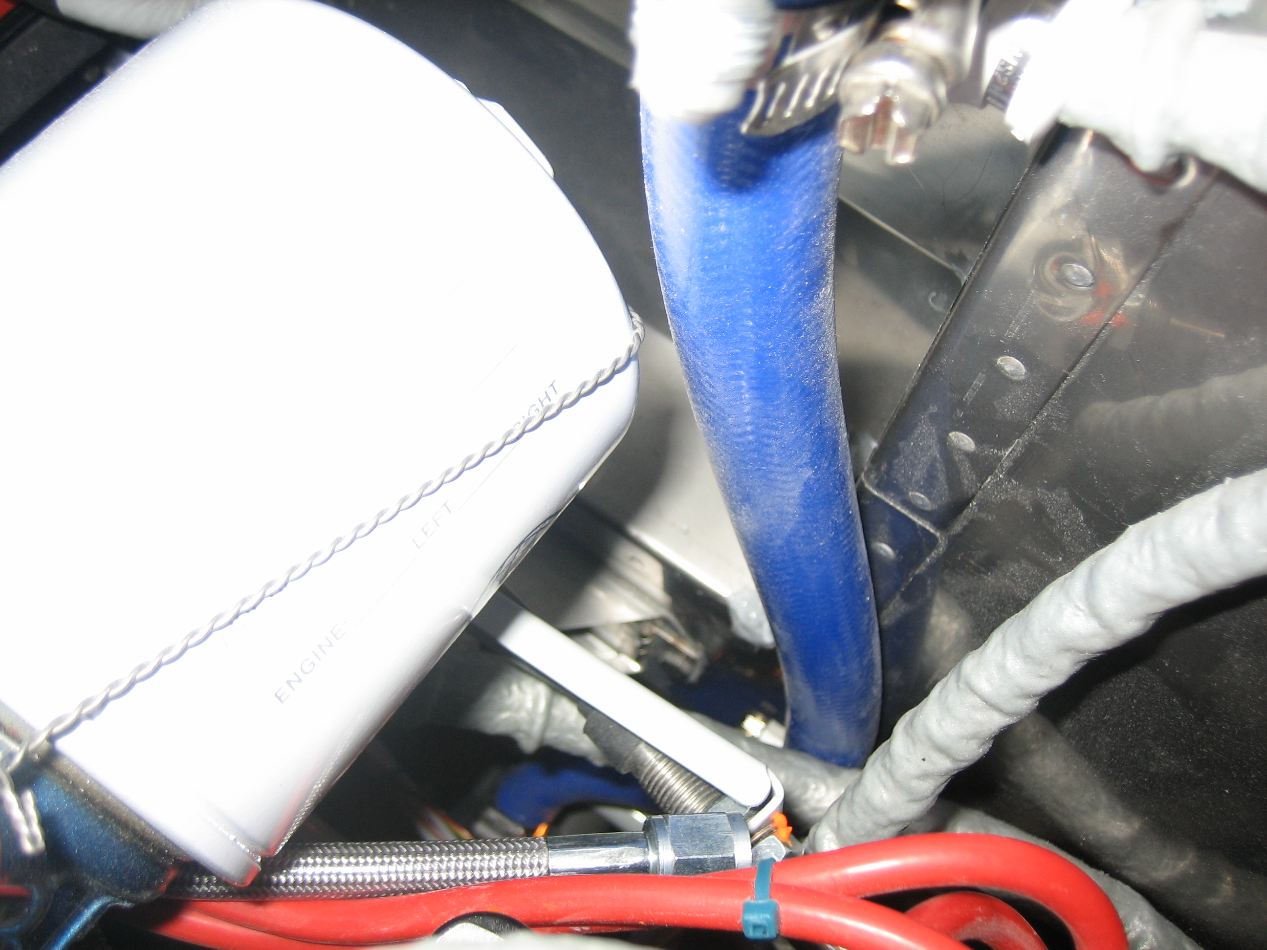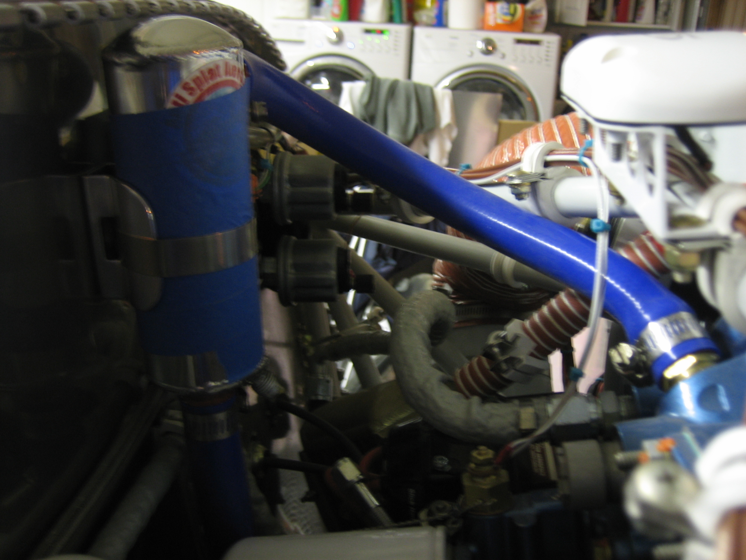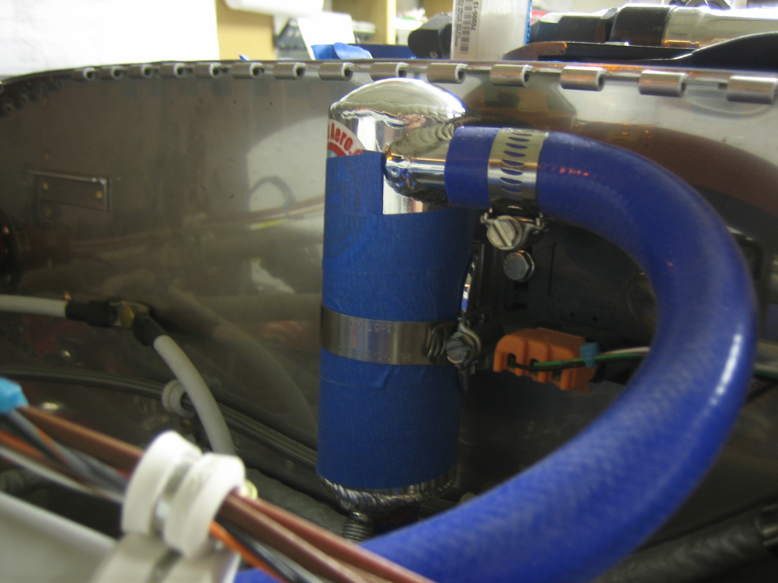 The output of the oil separator goes straight down the firewall. You can see that it just clears the oil filter.