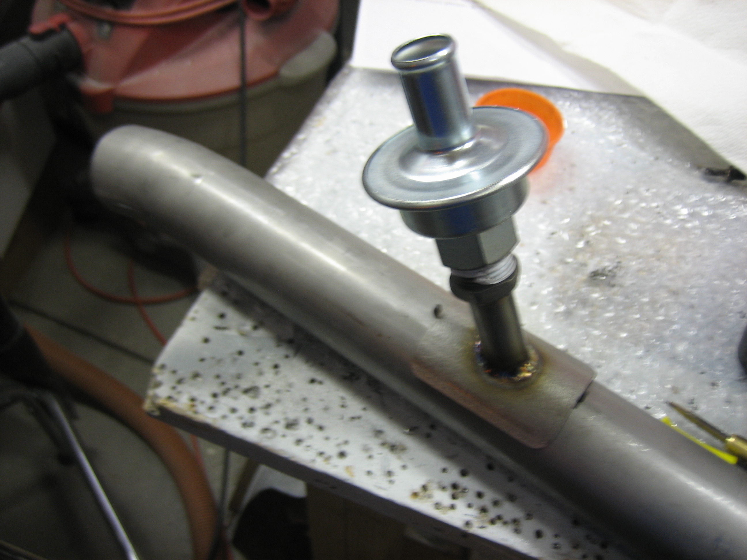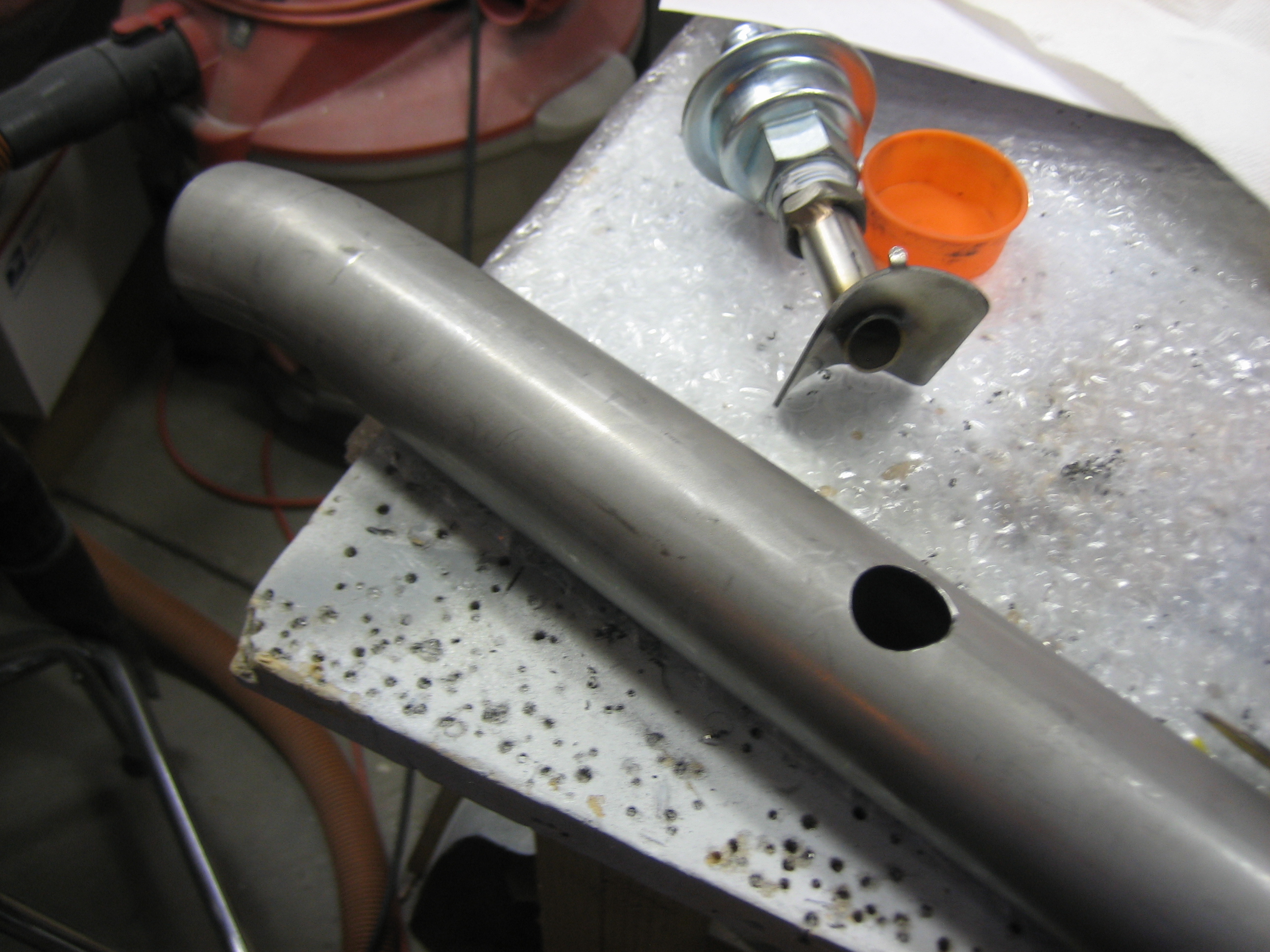 I pulled off the #2 exhaust pipe and drilled a 3/4″ hole in the top.