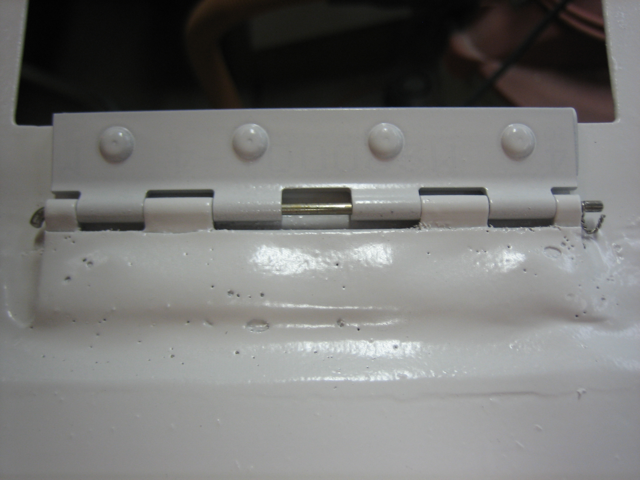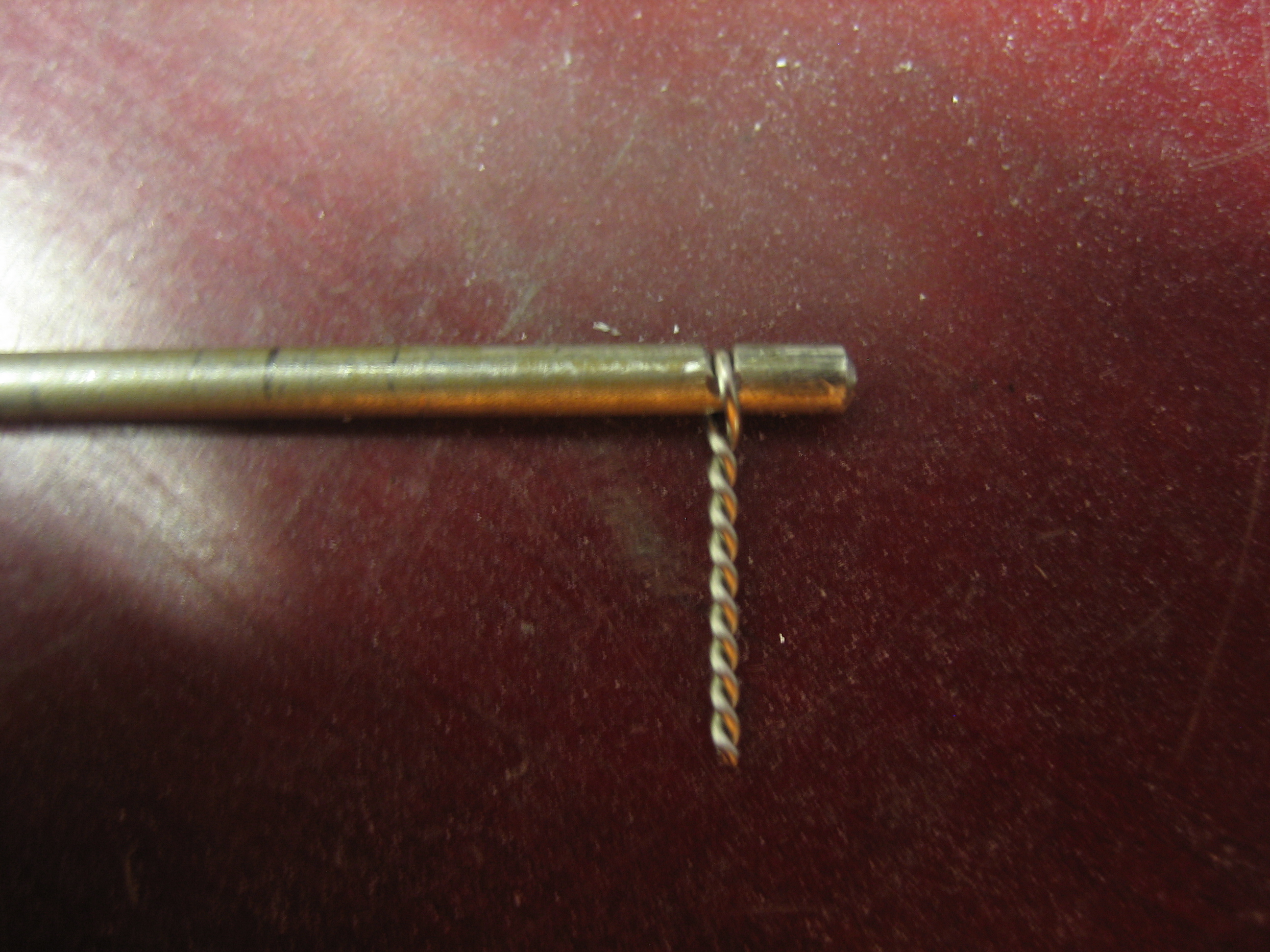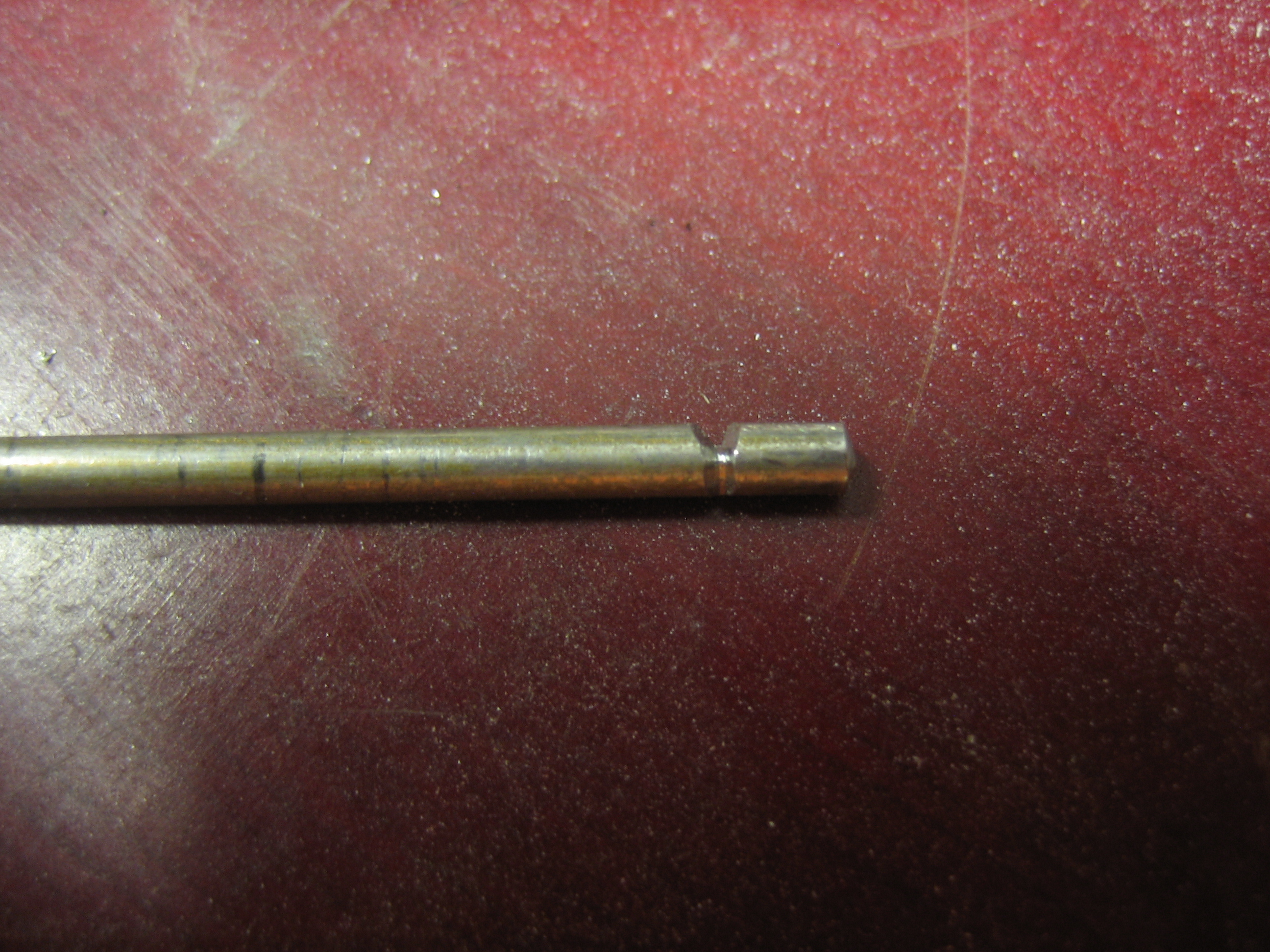 I have been giving some thought to how to secure the hinge pin for the oil door. Many builders just insert the pin and bend both ends, but then you can never remove the pin without destroying it. I decided to bend only one end and use some safety wire to prevent the pin from sliding out. I filed a groove in the end of the pin that goes about 3/4 of the way around the circumference.