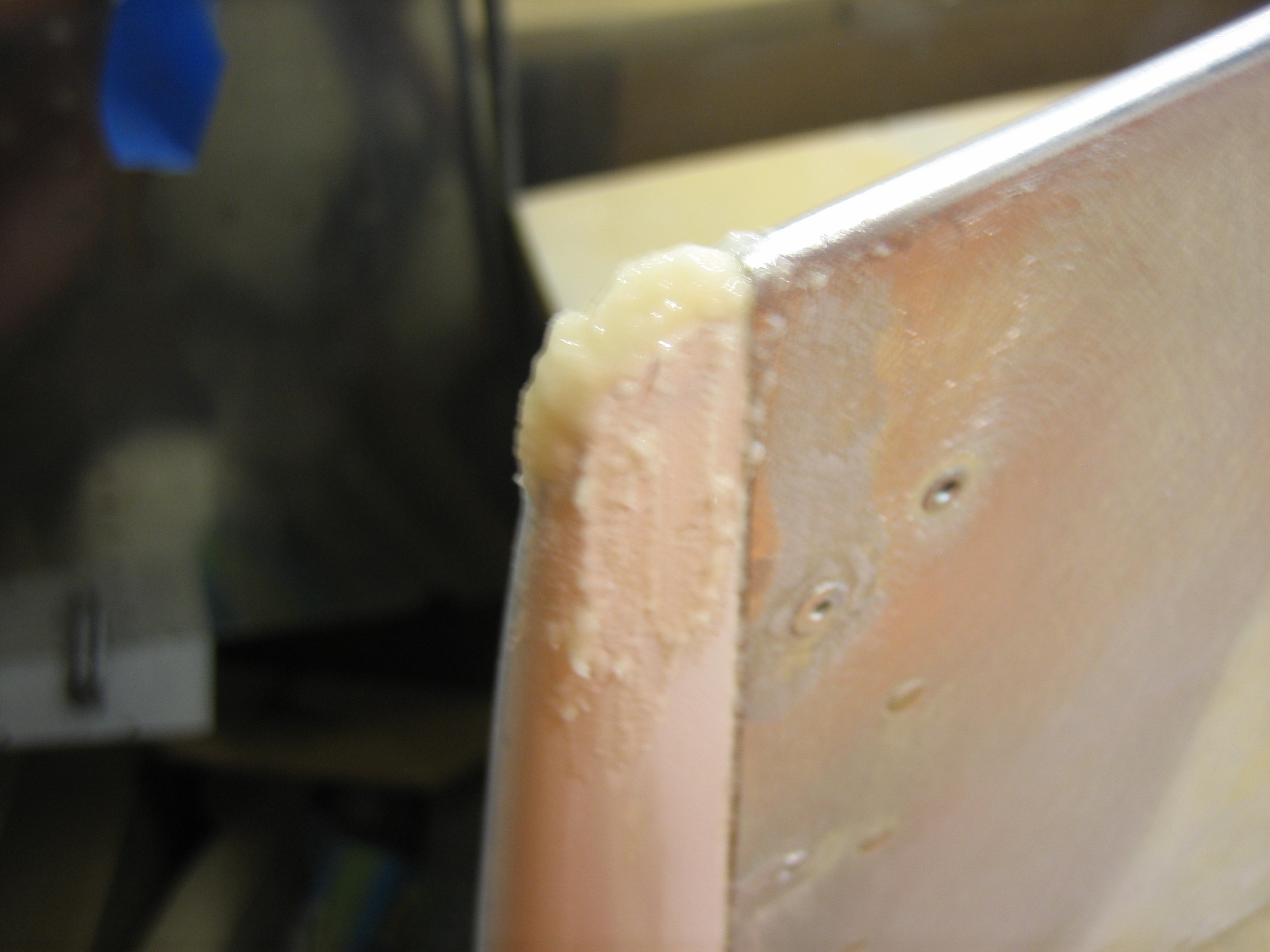On the leading edge, the countersink weight didn’t align with the leading edge skin, so I applied some of the filler here to build it out.  I’ll file this flush when it cures.
