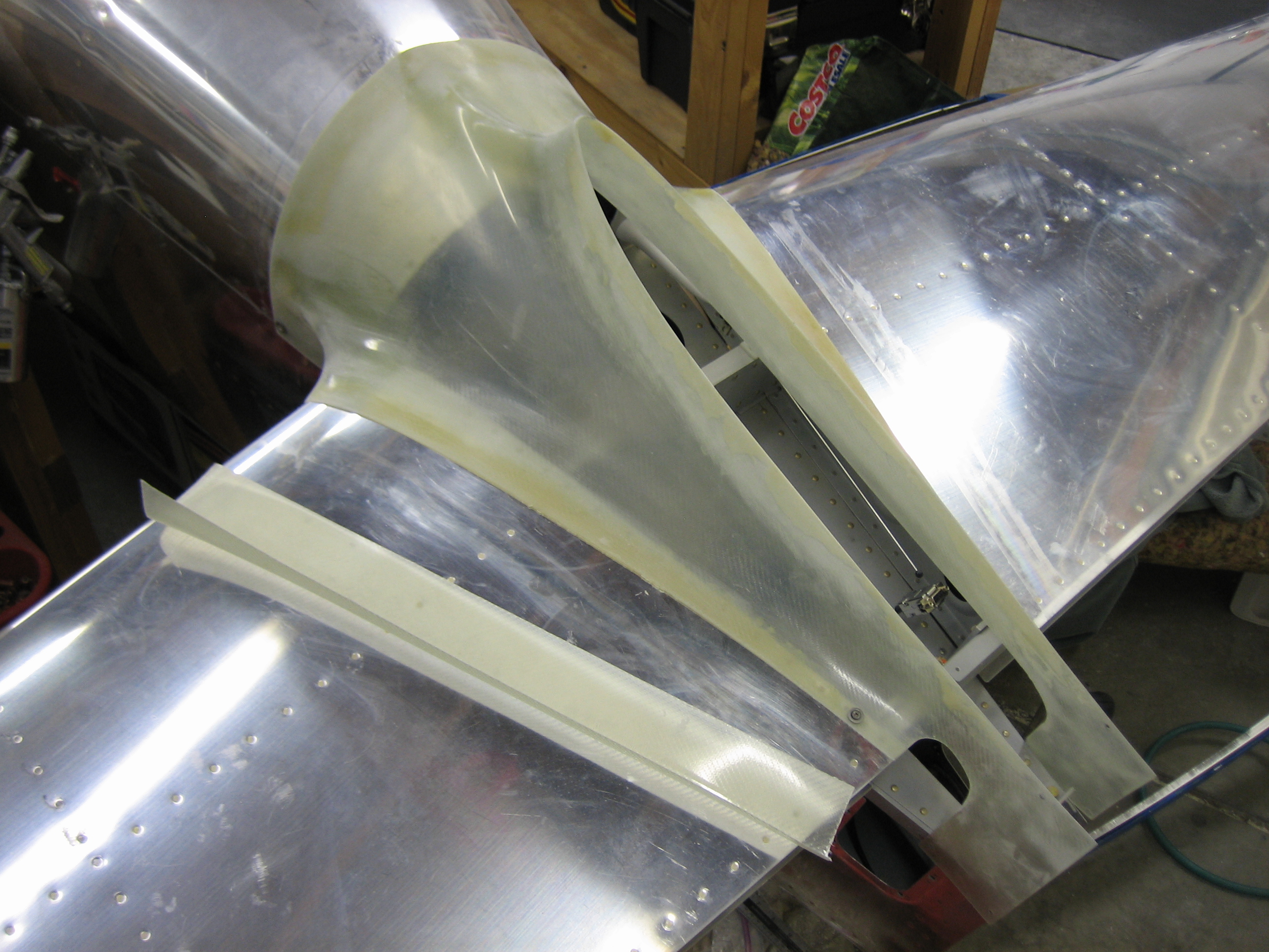 I temporarily bolted the horizontal stabilizer back in place and then added the upper empennage fairing so that I could begin positioning the lower empennage fairing.