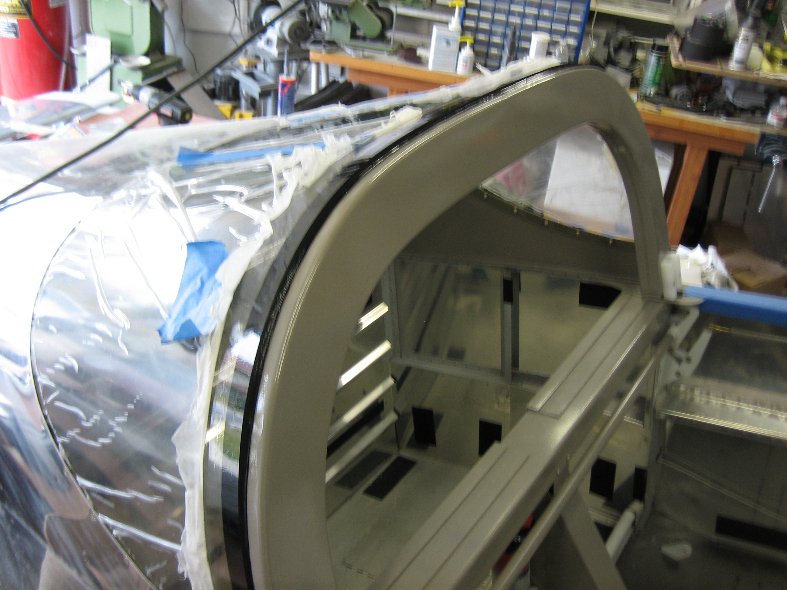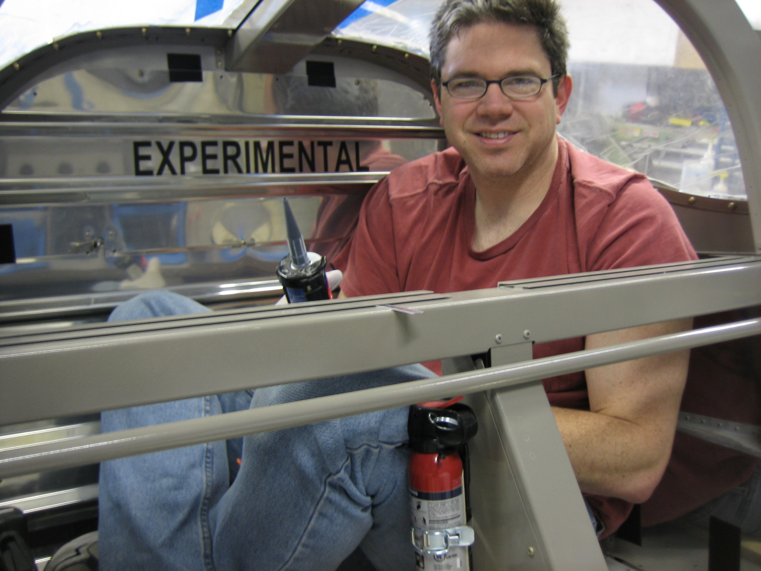 I came out this morning and pulled all of the spacers holding the rear window in place. I closed the canopy to check the fit and I’m super happy with the fit. I needed to apply sealant to both the front and back of the joint, so I climbed into the baggage area. This was a huge pain, and I’m not looking forward to having to do this in the future for maintenance. Since Jenn was entertained by my discomfort, she caught another picture of me.