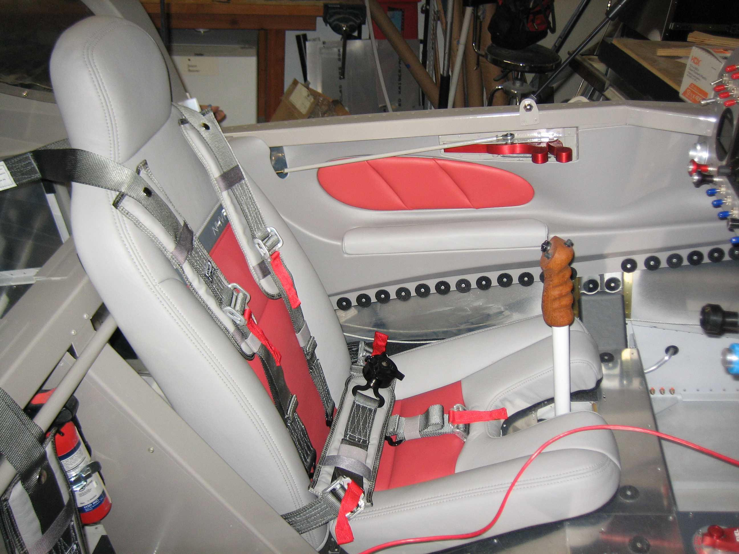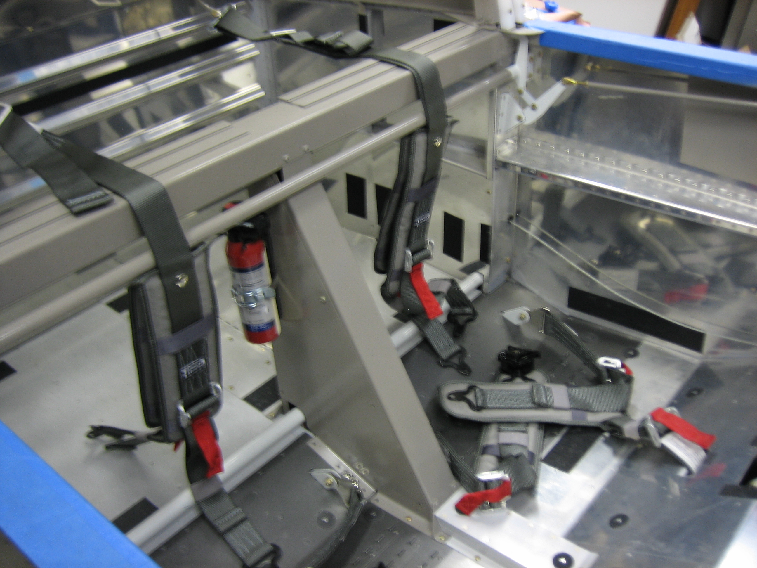 Next, I installed the upper side panels. The lower panels can’t go in yet since the seat pans have to come out to attach the wings. I also installed the pilot’s seat so that I could adjust the seat belts.