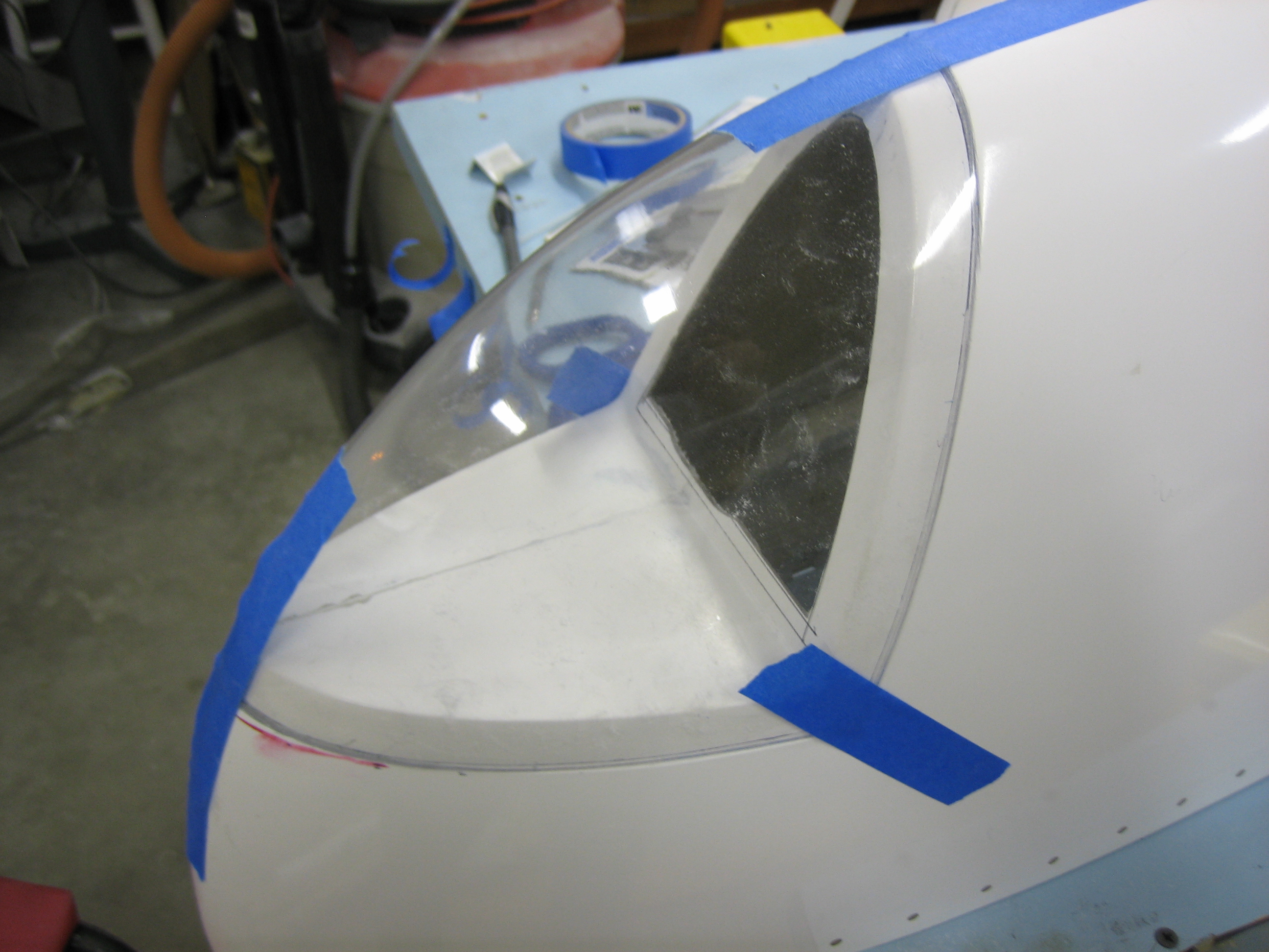 Here’s roughly where the light will be mounted.  I’m going to fabricate this plate out of 0.040″ plate and see if that works.  There’s a good chance I might have to move up to 0.063″ plate if there is too much flex.  I’m going to leave the large gap around the light for now until I can fly at night and get the light aimed properly.  After that, I’ll fabricate a cover plate that just clears the light to cover the hole.