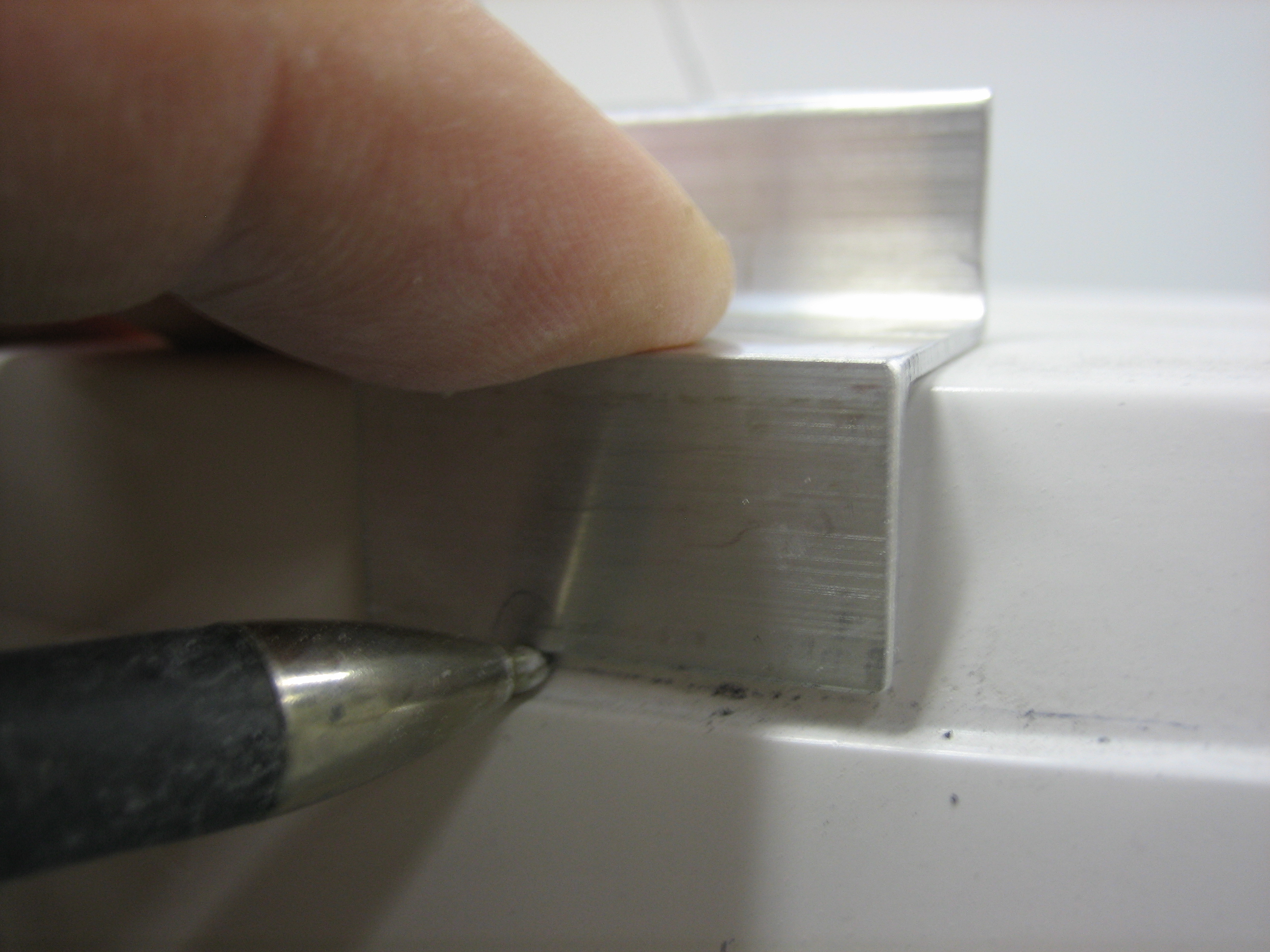 Instead of trying to sand the flange perfectly and then sand the lens to fit, I marked a line 5/8″ back from the face of the recess.