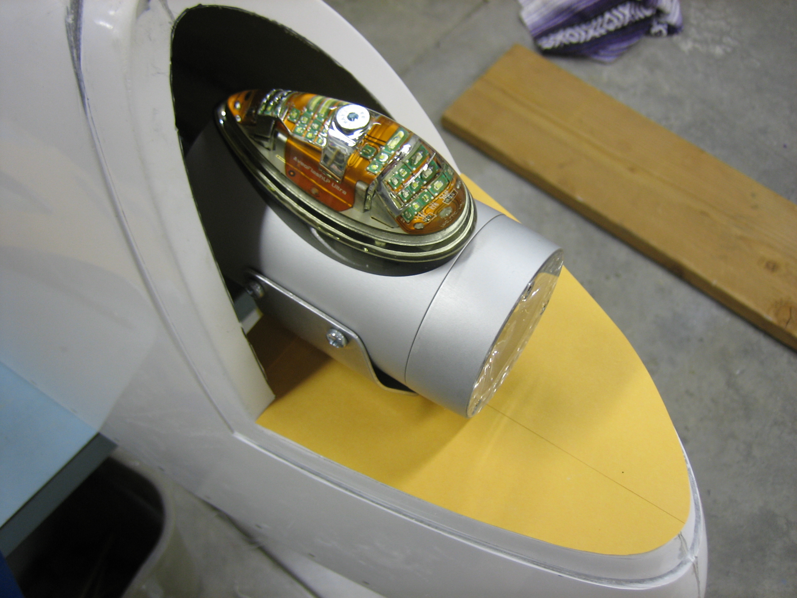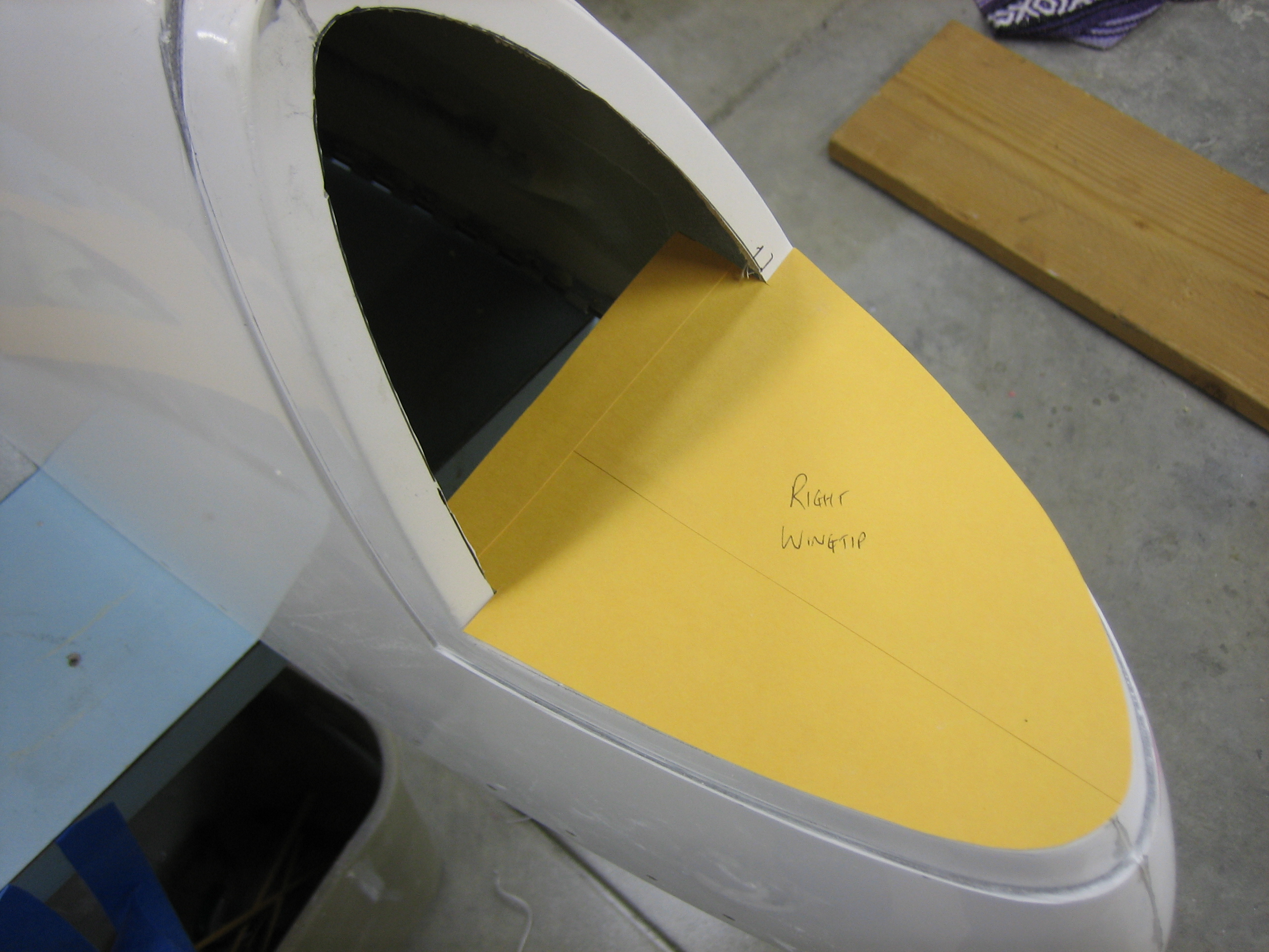 I used some scrap paper to make a template for the mounting plate.  This protrudes back inside the wingtip because the mounting bracket for the light needs to be recessed behind the plane of the other face of the recess.
