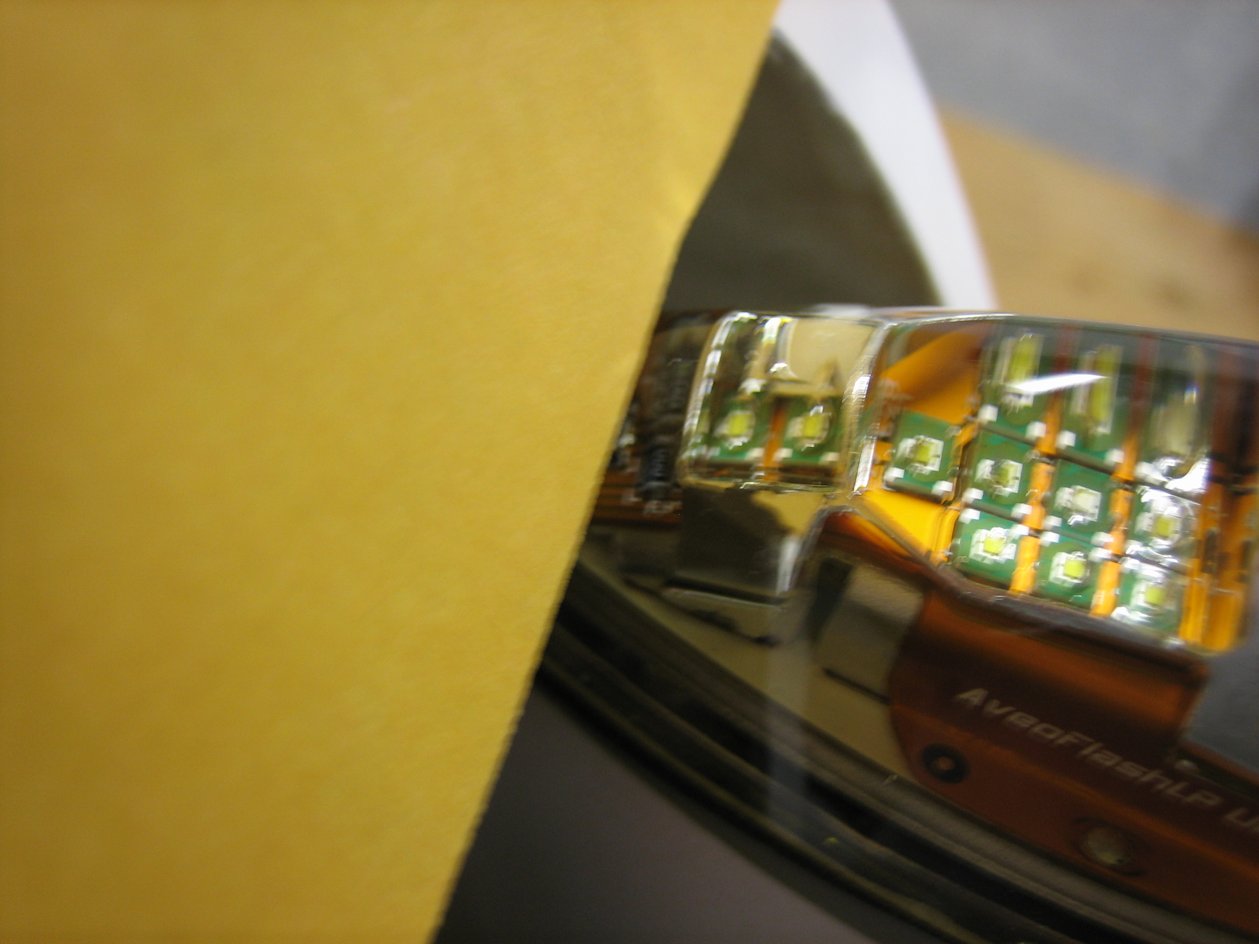 I held up a piece of scrap paper where the plate will eventually cover the gap to ensure that I’m not blocking the rearmost LEDs.  This position is perfect.  All LEDs are visible and I have plenty of clearance from the lens for adjustability.