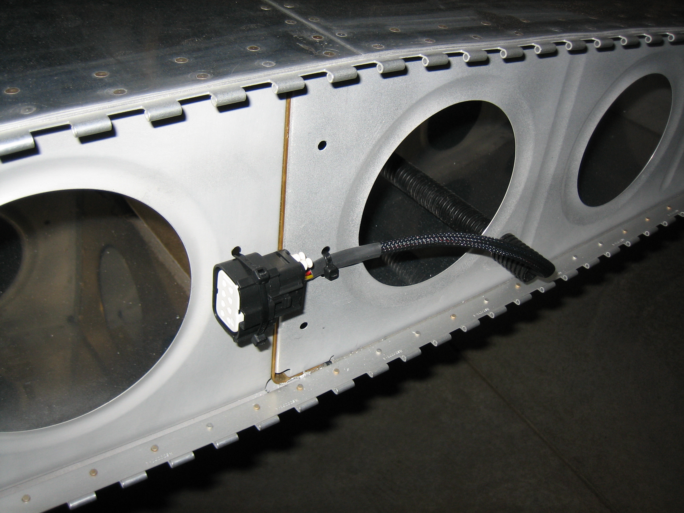 I trimmed the wires coming out of the wings and installed the connectors. These are waterproof and should keep me from getting any corrosion in the contacts. I also installed the connectors onto the remaining wire bundle that I cut off and will hook these up to the lights tomorrow.