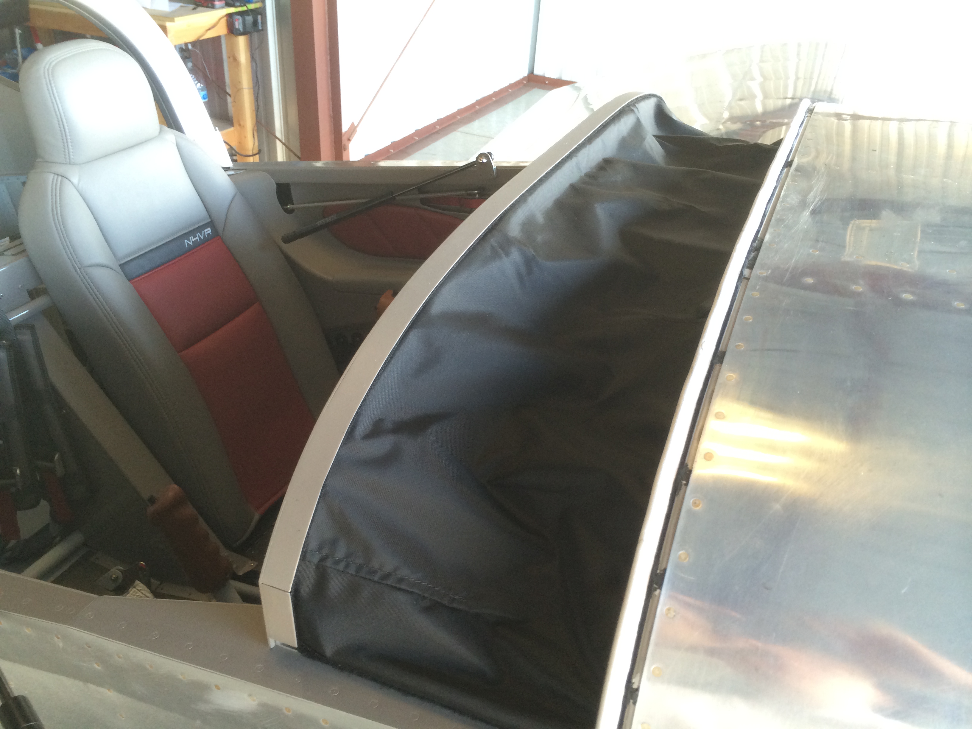 In preparation for wrapping up the canopy and getting it reinstalled, I applied the weather stripping to the flange and trimmed it to fit. I also recently received my avionics cover from Flightline Interiors, so I installed the supplied velcro and tested the fit. It works great and should hopefully help me keep my avionics dry.