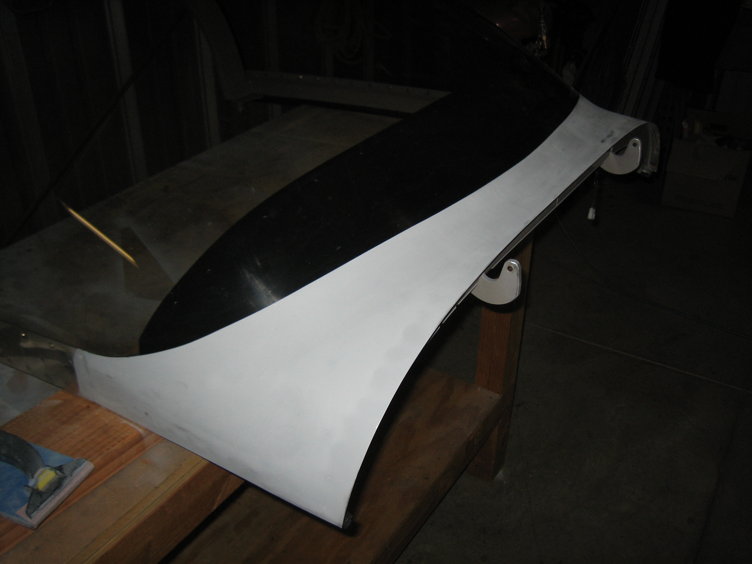 I sanded down the epoxy I applied the other night and painted on a few coats of primer. There are a few pinholes I need to deal with, but this is good enough for first flight.