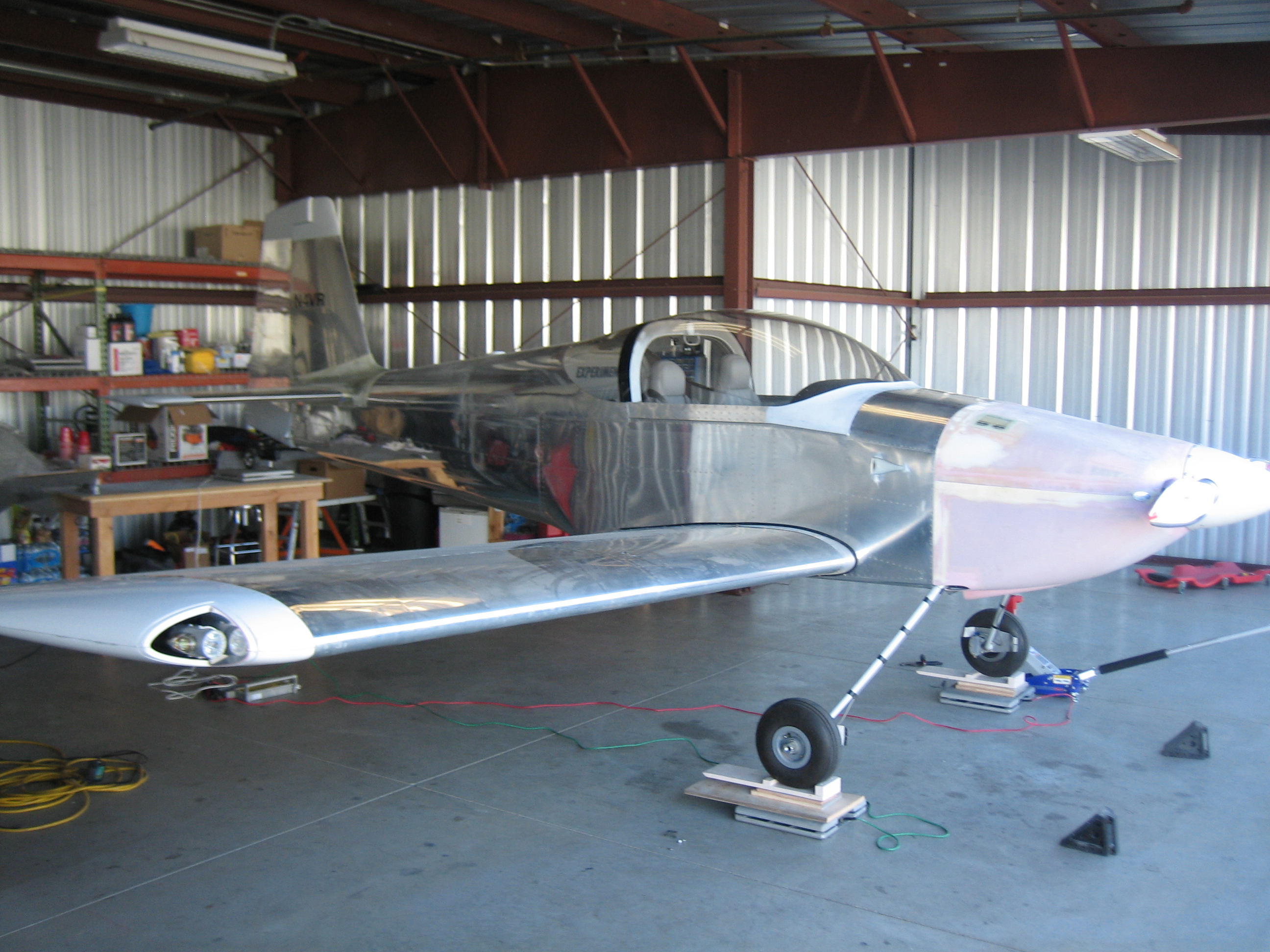 After installing the empennage fairings and all of the wing inspection panels, I leveled the plane and put it on scales. I came in right at 1100 lbs which is great. It probably means I’ll be around 1130 or so with gear fairings and paint. My center of gravity is farther aft than I would have liked at 81.35″, or 2.65″ aft of the forward limit. This makes it fairly easy to load aft of the aft CG limit, so I’m likely going to have to shift some weight forward or add more weight under the cowl.