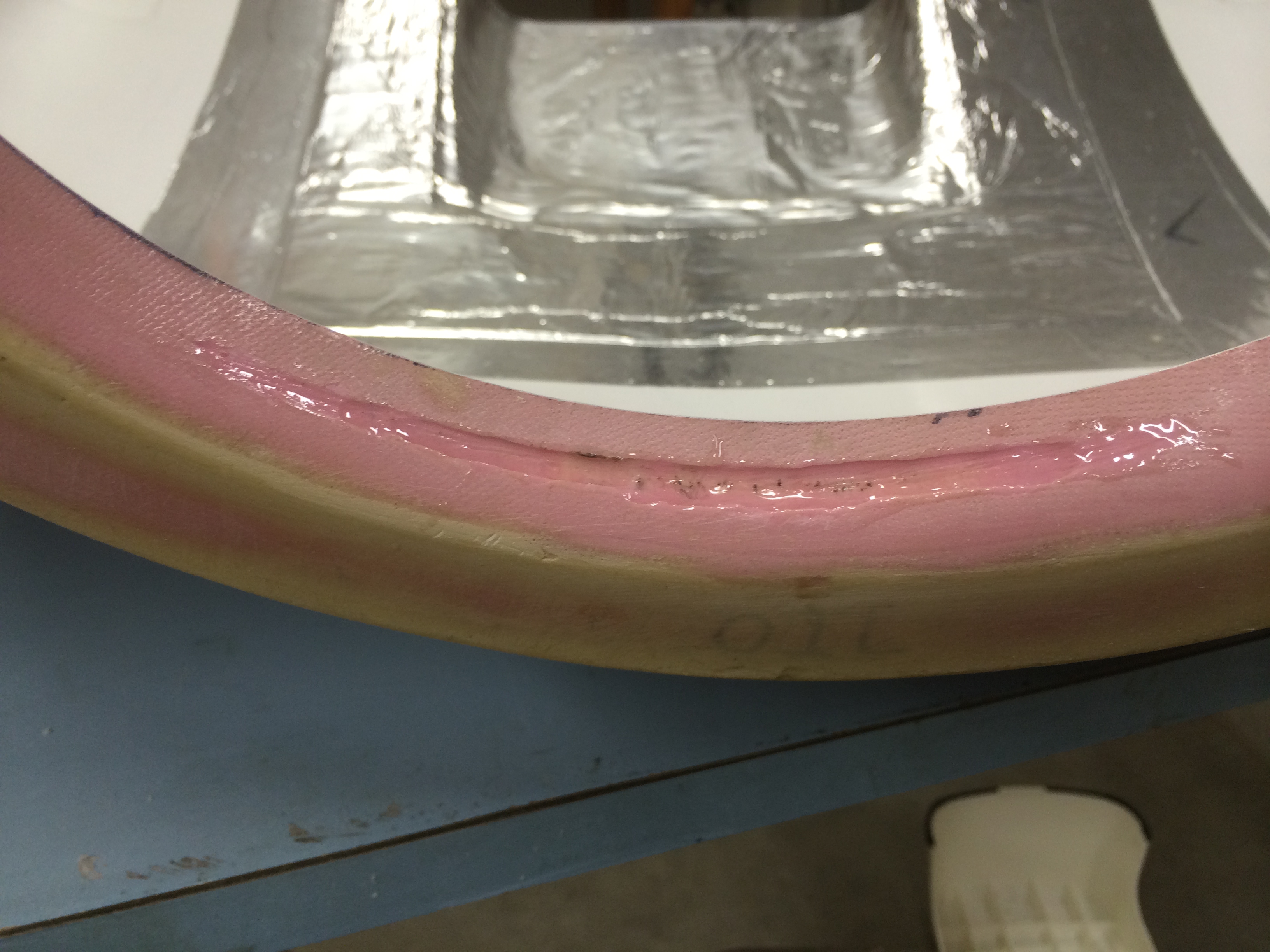 My flox is down at the hangar, so I cut up a small piece of fiberglass cloth into tiny pieces and mixed it into some epoxy. I filled the gap with this and left it a little proud of the surface. I’ll grind this flat once the epoxy cures.