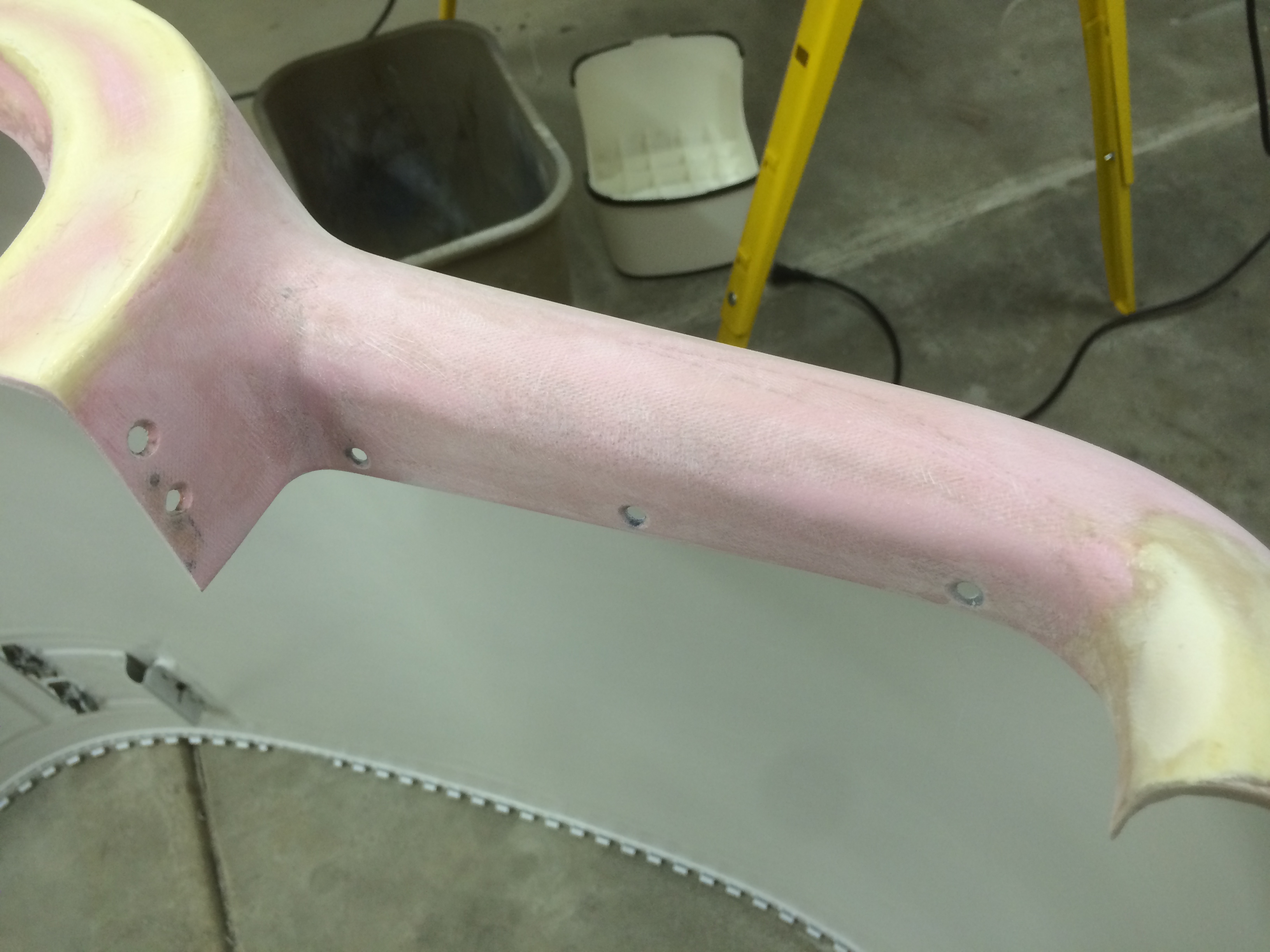 When I did the first taxi test, I had incorrectly installed the screws that tie the conical section of the spinner backplate halves together. I forgot that there was a note in the installation manual that the screw heads needed to be on the aft side to provide clearance between the spinner and cowl. I installed the nut on the aft side, and the ends of the screws cut into the cowl flange a bit. I ground all of the damaged material out of the cowl and then applied a thin layer of raw epoxy to coat the inside of the cut. In addition to reversing the screws, I switched from AN515 to AN525 screws to further reduce the height of the head.
